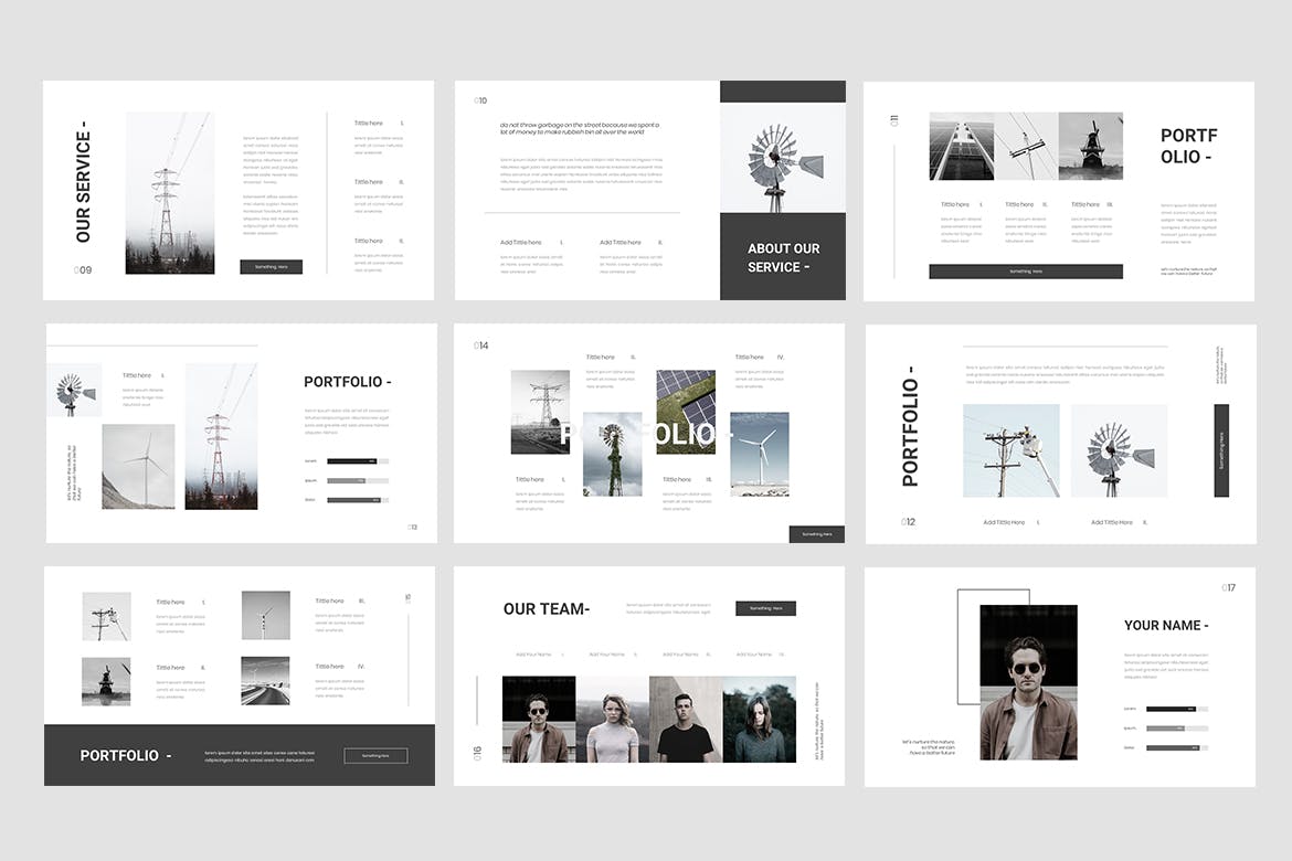 这次老不湿分享的是,时尚简约高端可再生能源环保绿色清洁能源公司powerpoint幻灯片演示模板(pptx),整洁的布局将使您的内容结构化并以正确的流程呈现。幻灯片也很容易编辑。