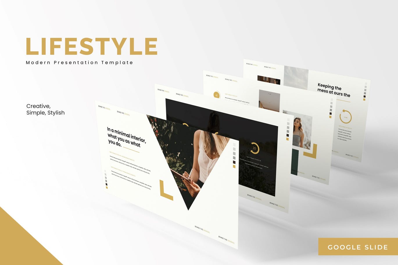 这次老不湿分享的是,时尚高端简约google slides谷歌幻灯片演示模板(pptx),具有第5种预制的颜色变化立即获取, Lifestyle-Google幻灯片模板是满足商务或个人需求的多功能演示文稿的理想模板。此模板中的所有元素都是使用Google幻灯片制作的,只能使用Google幻灯片进行编辑,插入内容,将图像替换为占位符,更改颜色,以及所有演示文稿(包括动画幻灯片),并将幻灯片展示给业务合作伙伴。快乐滑块!