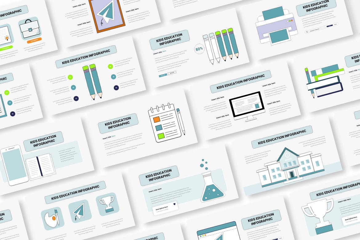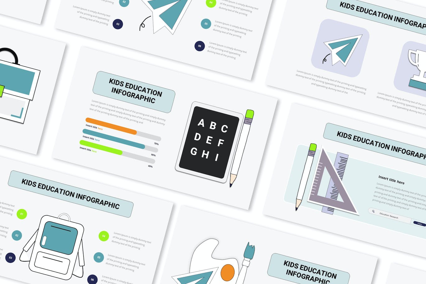 儿童教育信息图 Powerpoint 演示模板,用于您的公司简介、营销和多用途业务。