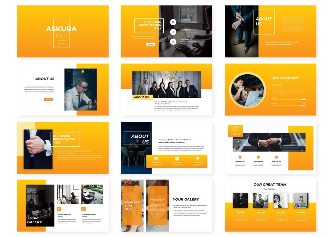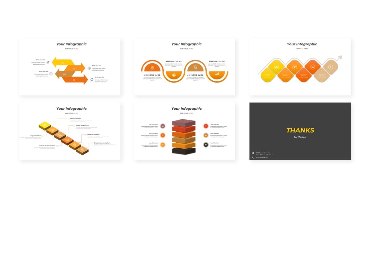 这次老不湿分享的是,时尚高端多用途的高品质Google Slide谷歌幻灯片演示模板(pptx),预制的颜色变化(5色)立即获取!这是一款出色的Google SLides模板,可满足多种演示业务或个人需求。此模板上的所有元素都可以通过Google SLides形状进行编辑,不需要其他软件,只需在Google SLides上进行编辑,输入内容,将图像替换为占位符,更改颜色,以及,所有演示文稿都包括动画幻灯片并展示您的幻灯片走向世界,干杯….. :)