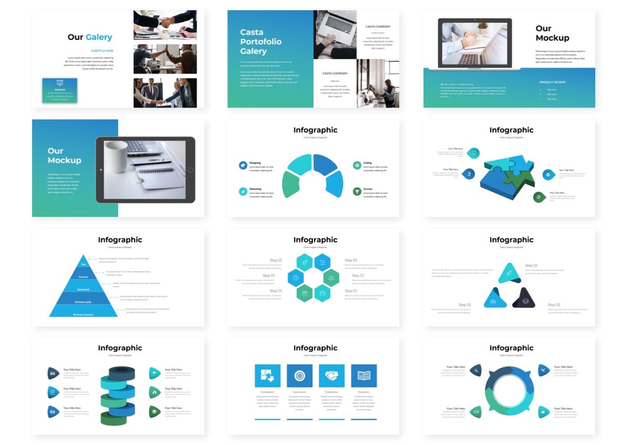 这次老不湿分享的是,时尚高端多用途的高品质简约Google Slides谷歌幻灯片演示模板(pptx),预制的颜色变化(5色)立即获取!这是一款出色的Google SLides模板,可满足多功能演示业务或个人需求。此模板上的所有元素都可以通过Google SLides形状进行编辑,不需要其他软件,只需在Google SLides上进行编辑,输入内容,将图像替换为占位符,更改颜色,以及,所有演示文稿都包括动画幻灯片并展示您的幻灯片走向世界,干杯….. :)