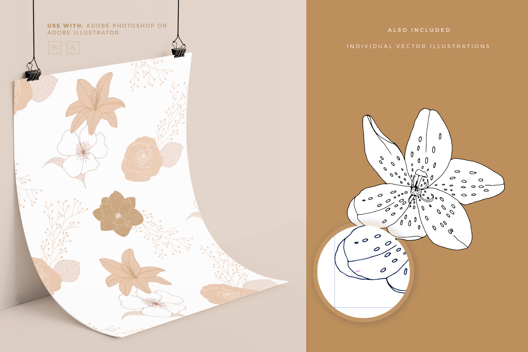 • 5个单个矢量花卉组合,文件格式:AI,PSD,JPG(高分辨率)