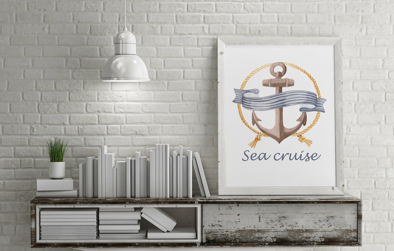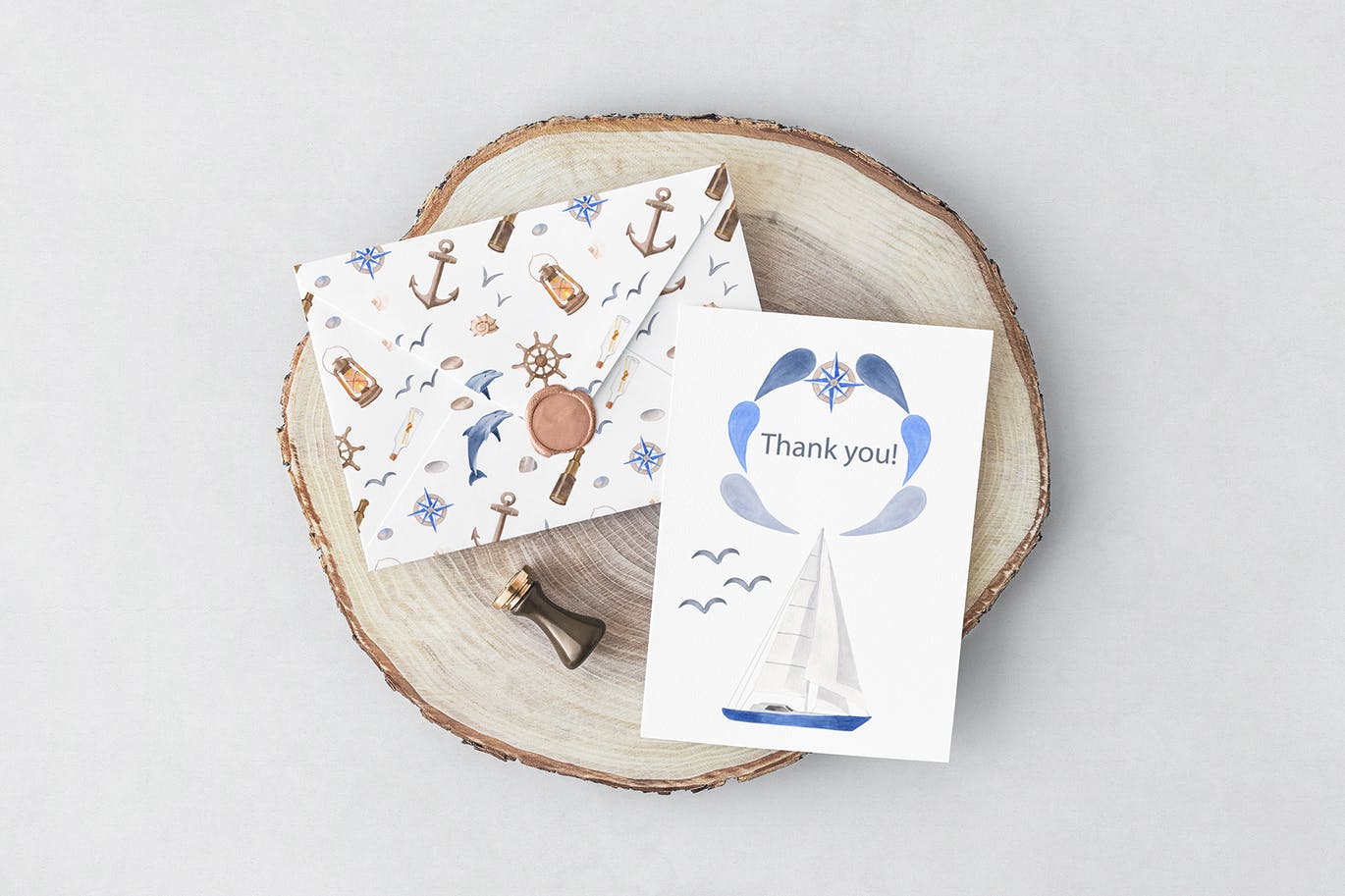 适用于海洋主题的相关项目,如邀请函,墙纸,剪贴簿,织物,名片,标志。