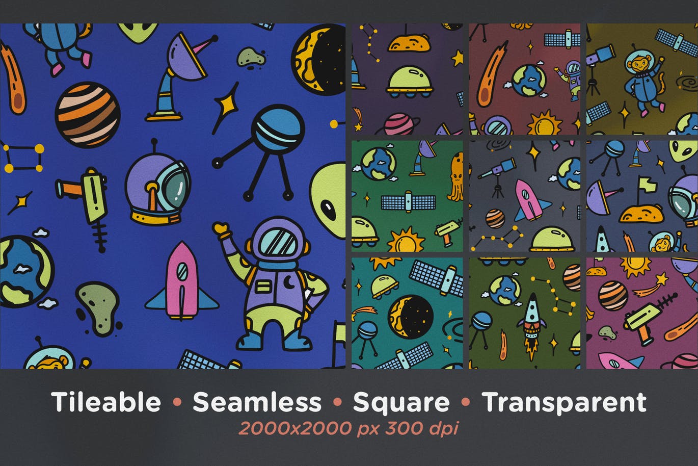 让我们通过这种有趣的无缝模式为您的_astrophilia_生活加油!它是透明的,因此您可以将任何颜色用作背景,也可以将一种图案与另一种图案组合使用。每种格式均为2000 x 2000 px(300 dpi),适用于任何材料,数字或印刷目的。包含众多流行的天文学资料,例如:星,太阳,地球,行星,小行星,太空船,火箭,宇航员,彗星,星系,外星人,月亮,卫星,太空枪,望远镜,飞碟等。非常适合用于展示许多_astrophilia_艺术品,图案,纪念品,包装,商品,壁纸,贴纸,织物印刷,书籍封面,海报,小册子,信息图表,传单,社交媒体,横幅或任何其他促销媒体。