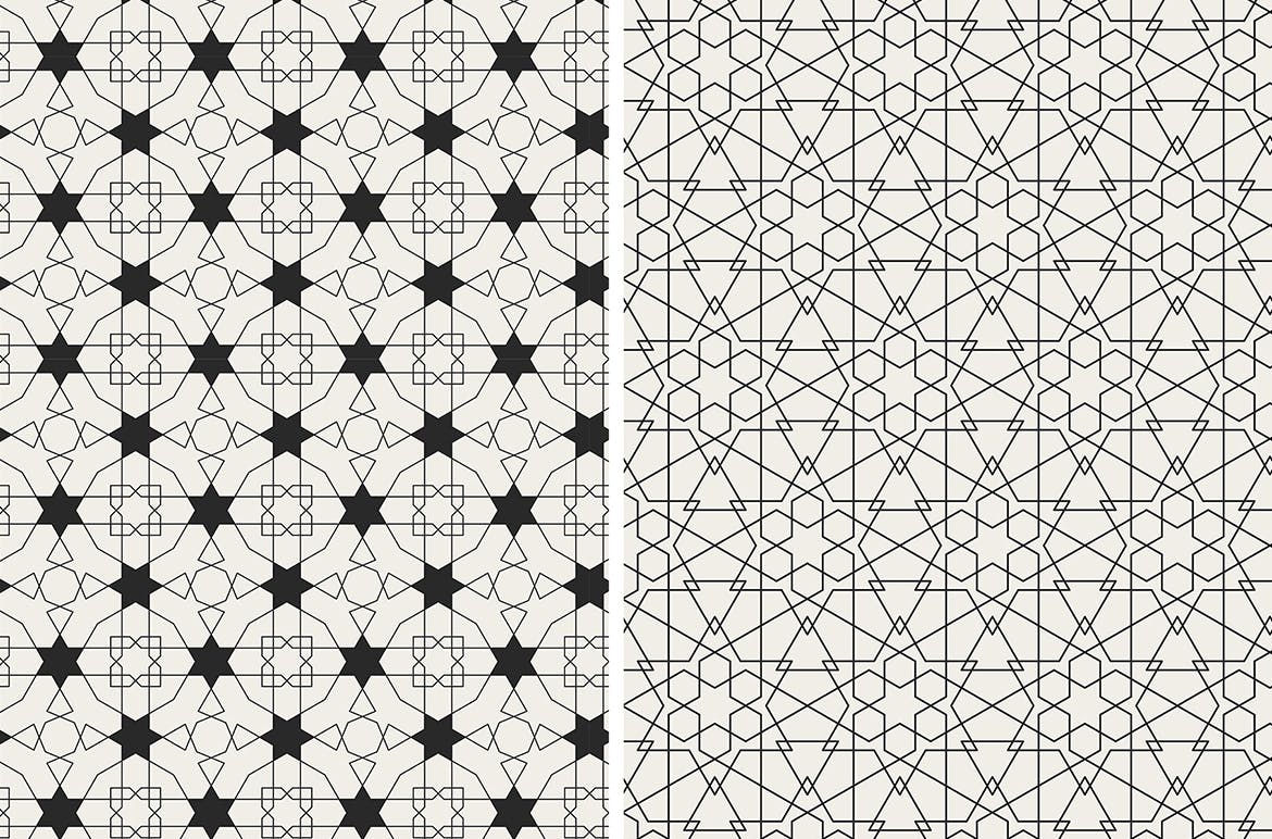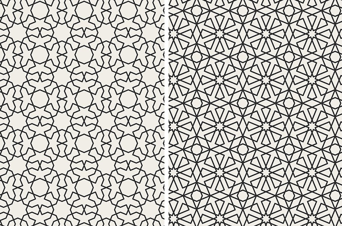 阿拉伯传统几何图案四方连续无缝图案素材,8个具有无缝图案和JPG预览的EPS10文件(5000x5000px, 300 dpi,RGB)。您可以使用Adobe Photoshop编辑JPG文件,EPS文件支持Adobe Illustrator版本10及更高版本。适用于任何图形项目:海报、手机壳、传单、网站、贺卡、应用程序、演示文稿、壁纸等。