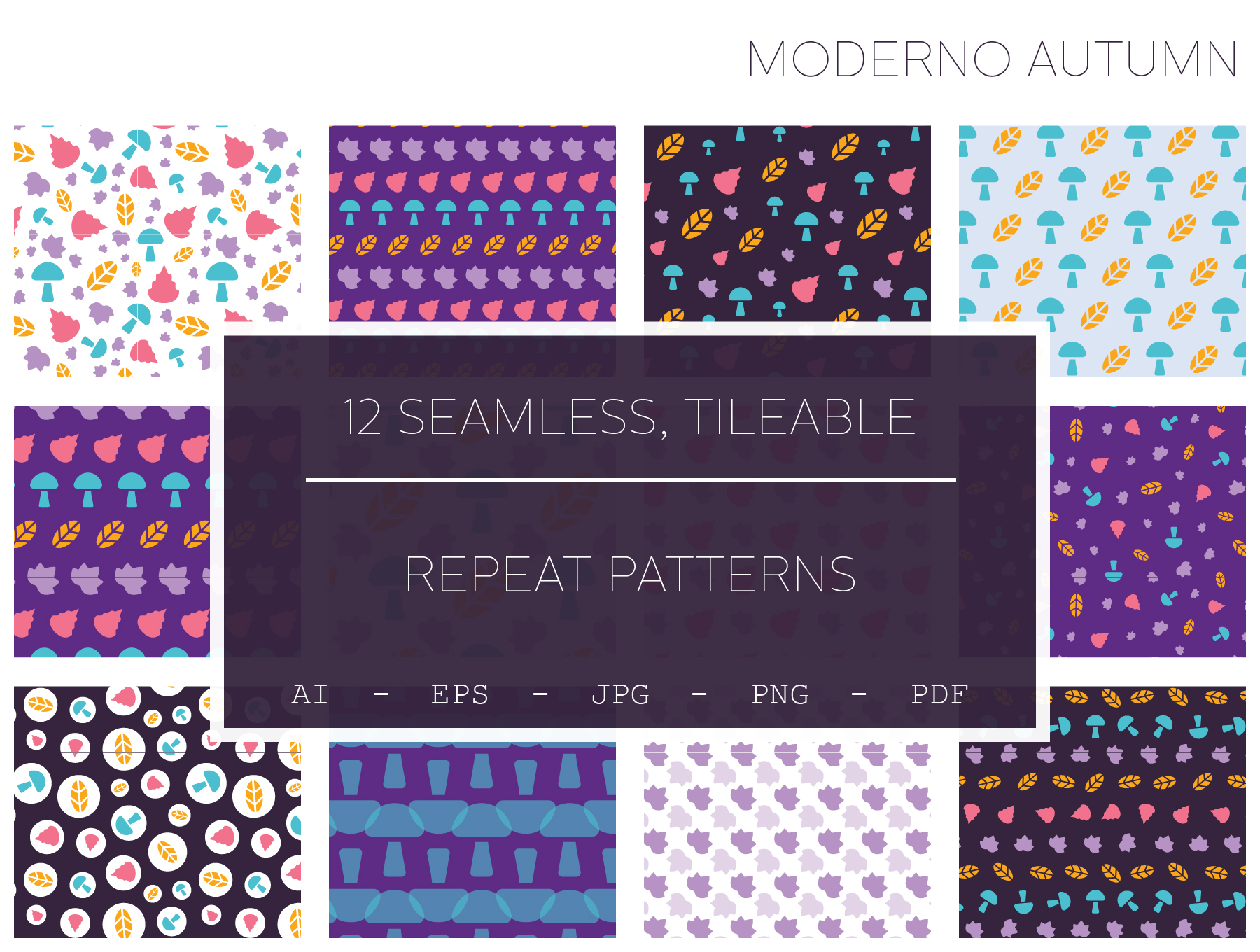 12种无缝图案的集合,旨在补充您的设计项目并帮助创建丰富,时尚和精致的样式,从面料设计到文具,从品牌到邀请函,海报和礼服,一应俱全。图案以现代方式设计,它们包含多种样式,令人愉悦的调色板,可以单独使用,也可以与其他图案组合使用(如您所愿)。