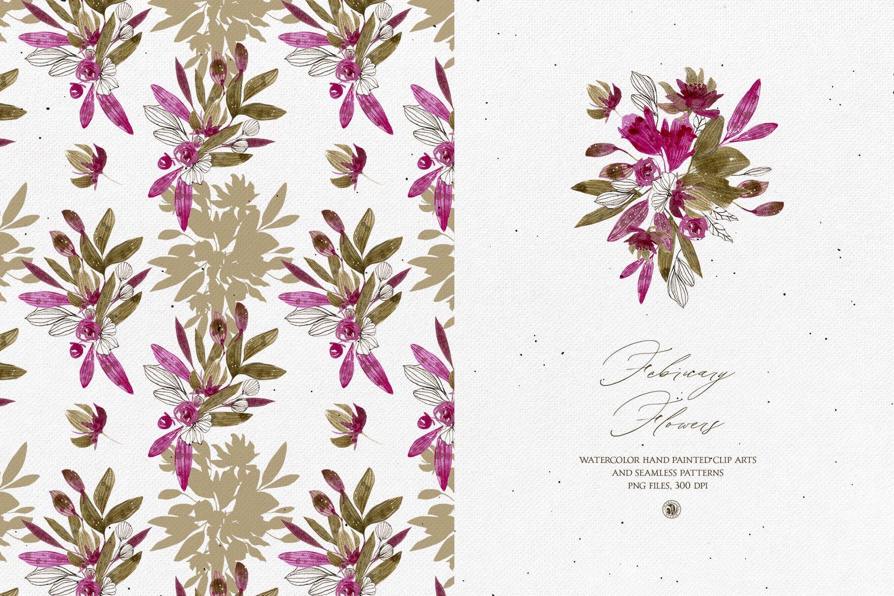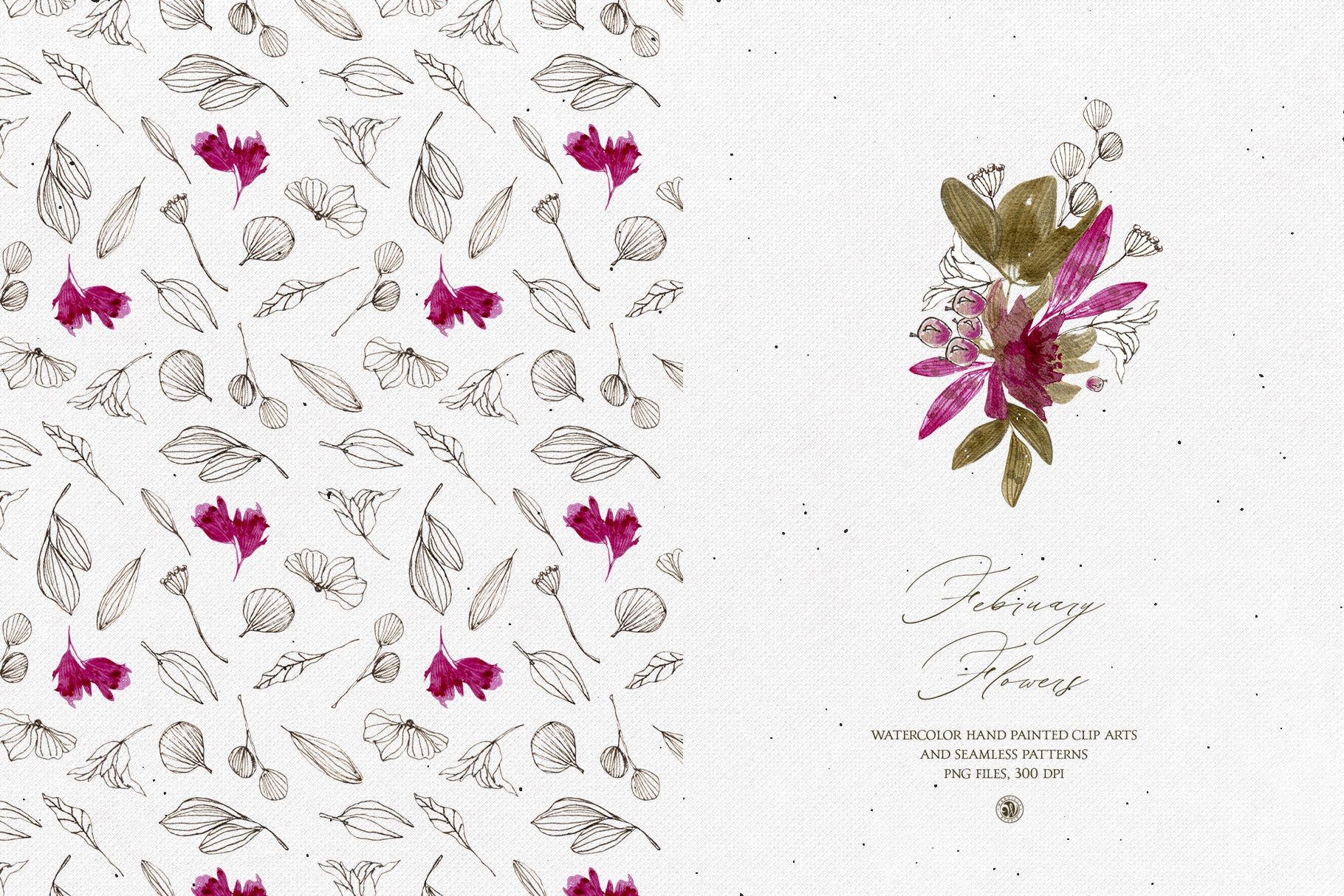 2月花-手绘水彩花和图案素材非常适合邀请函、名片、品牌、instagram、手工工艺品、废料预订、印刷纸制品等。