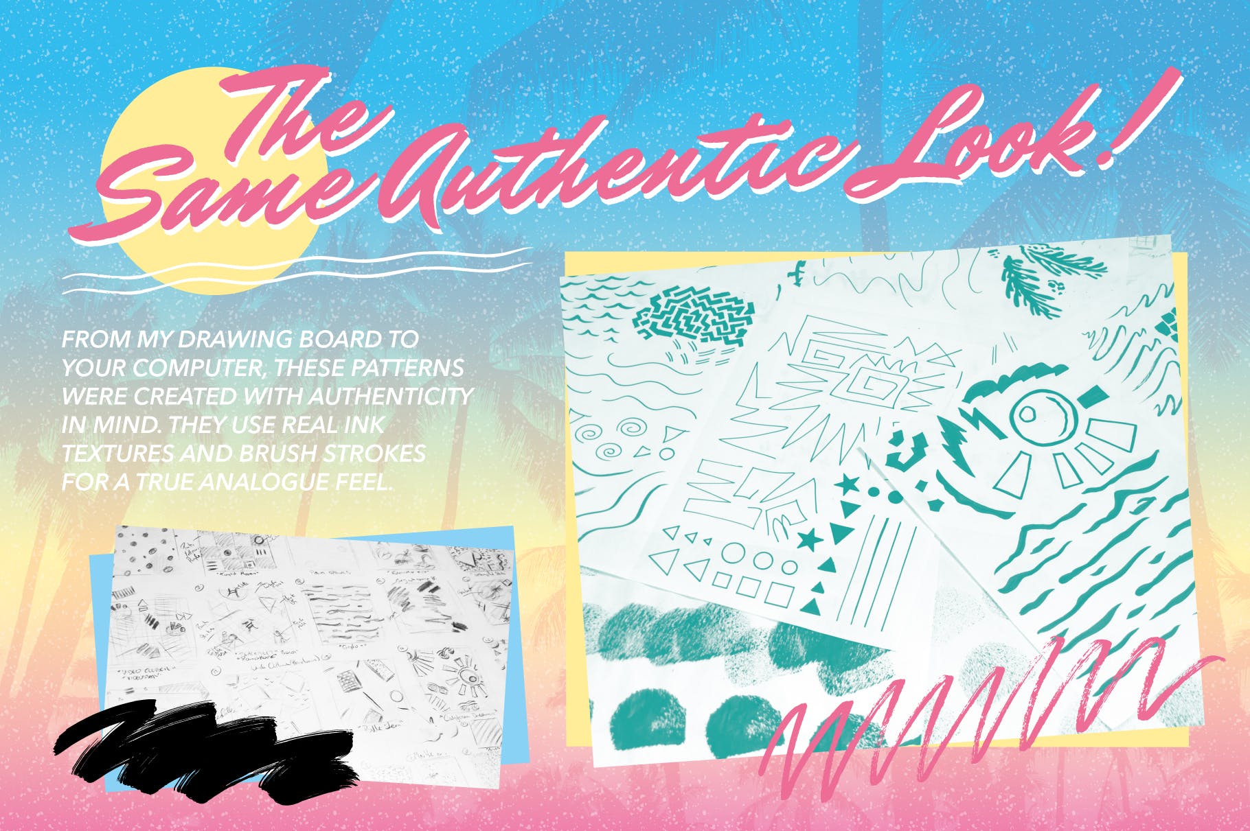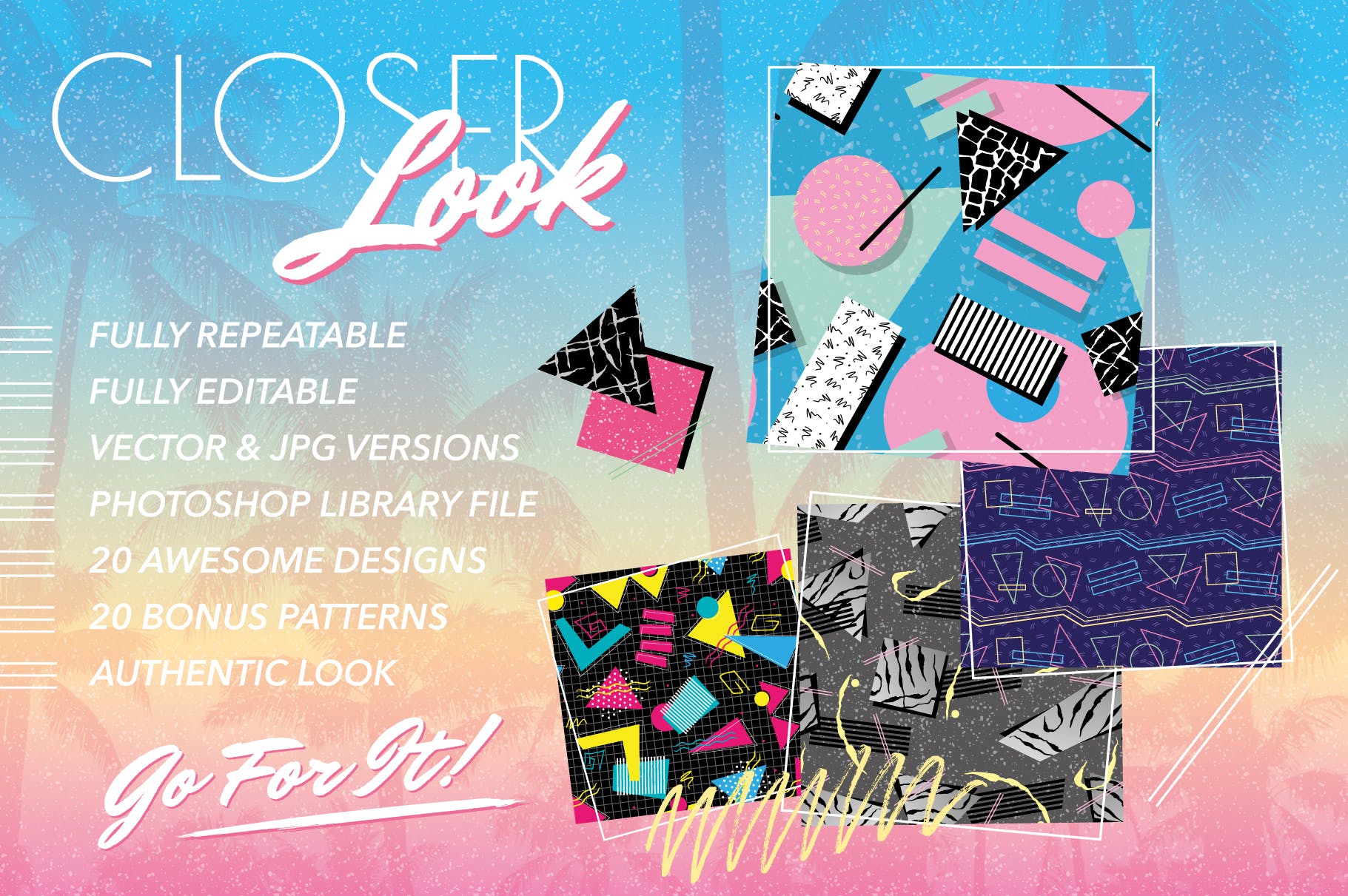 复刻欧美1980s年代设计风格图案背景素材第2卷为Photoshop和Illustrator提供20种全新的无缝图案,令你感觉回到80年代。这个新系列还拥有20个额外的奖励模式,这些模式可以单独使用,也可以与其他模式结合使用,或者作为全新设计的一部分使用。