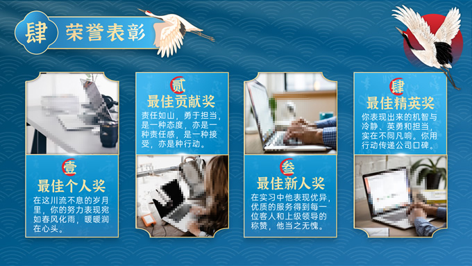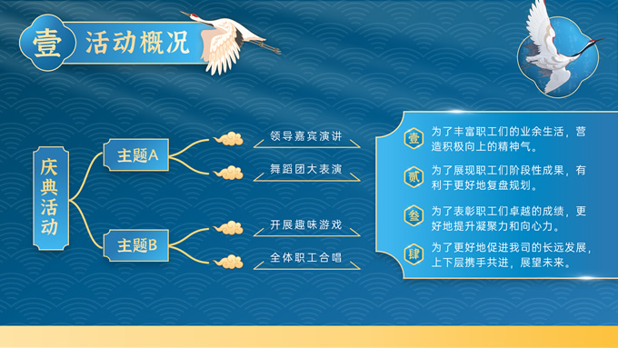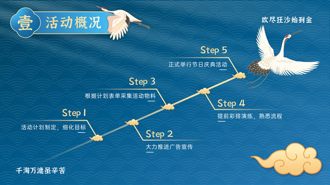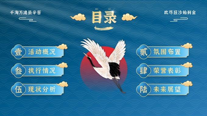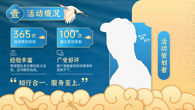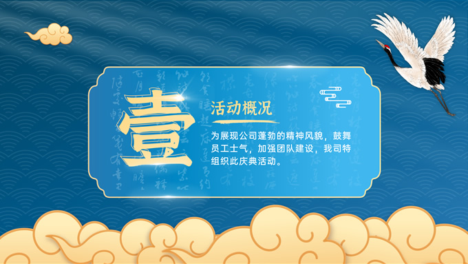 简介:完整内容国潮风庆典活动策划ppt模板,本模板共30P,这是目前为止我做的最令我满意的国潮风PPT,因为从很早以前,我就对国潮有过很多的遐想和欣赏,能够有幸用这些可爱的素材来拼接成一份完整的作品对于设计师来说本身也是一件非常愉快的事情,配色方面,我尽量不走寻常路,以蓝色为主色调,如果说你能感到眼前一亮的话那我就成功了~,P界达人 朝阳 作品。