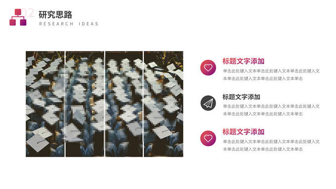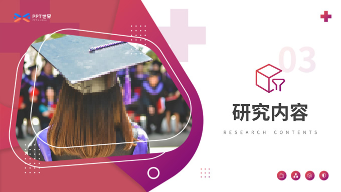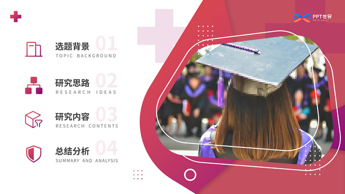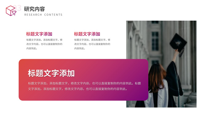 简介:几何风毕业答辩开题报告ppt模板,本模板共19P,目录:选题背景、研究思路、研究内容、总结分析,时尚几何风标题文字封面、目录页、过渡页,红紫渐变配色,简约时尚风版式内容页,适合开题报告、论文答辩、学术汇报等场景应用的几何风学生通用ppt模板。