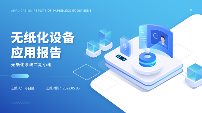 简介:科技插画风无纸化设备应用报告ppt模板,本模板共8P,科技蓝配色,插画主图科技风版式内容页,PPT竞技场无纸化系统小组优秀作品。