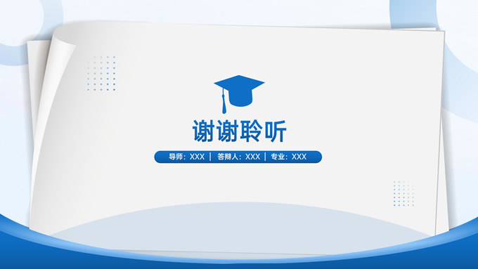 简介:卷边纸张学术蓝毕业论文答辩ppt模板,本模板共21P,几何元素、卷边纸张、博士帽标题文字封面、目录页、过渡页,学术蓝配色,阴影风格图表,简约清新内容版式,适合论文答辩、毕业答辩、学术汇报等场景应用的答辩通用型ppt模板。