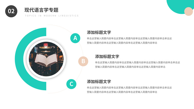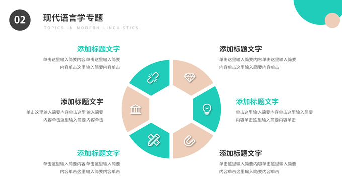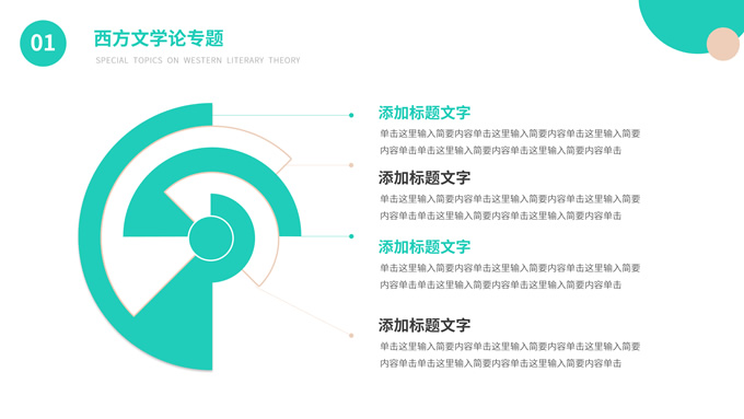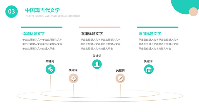 简介:汉语言文学专业论文答辩ppt模板,本模板共18P,圆圈、圆几何风标题文字封面、目录页、过渡页,绿咖配色,扁平化图表,简约清新版式内容页,适合论文答辩、毕业设计、学生汇报等场景应用的几何风汉语言文学专业论文答辩通用ppt模板。