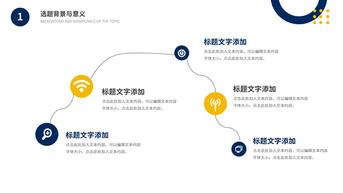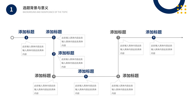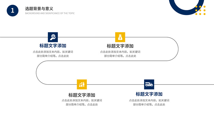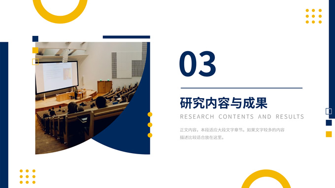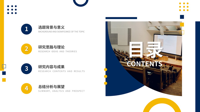 简介:时尚几何风大学生论文答辩汇报通用ppt模板,本模板共19P,目录:选题背景与意义、研究思路与理论、研究内容与成果、总结分析与展望,几何图形裁图几何风标题文字封面、目录页、过渡页,蓝黄配色,扁平化图表,时尚几何风版式内容页,适合论文答辩、毕业汇报、开题报告等场景应用的大学生毕业通用型ppt模板。