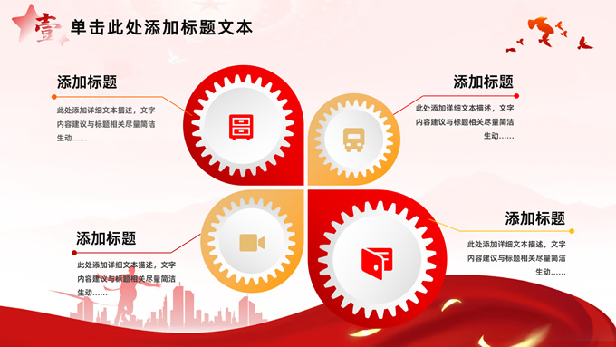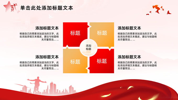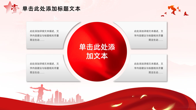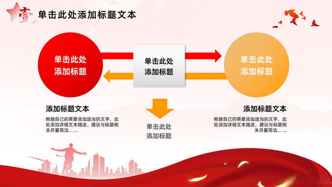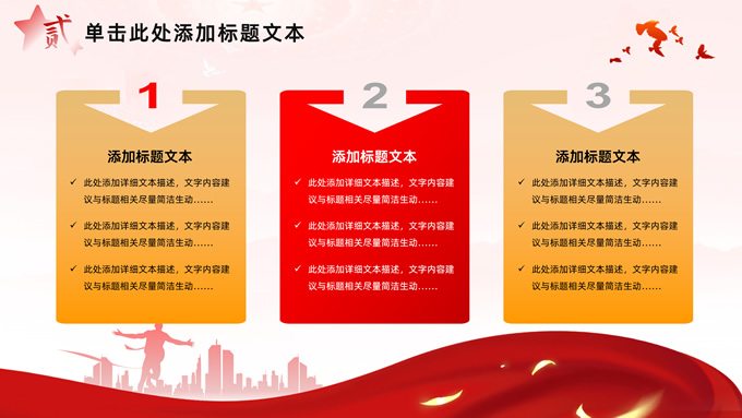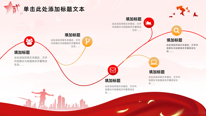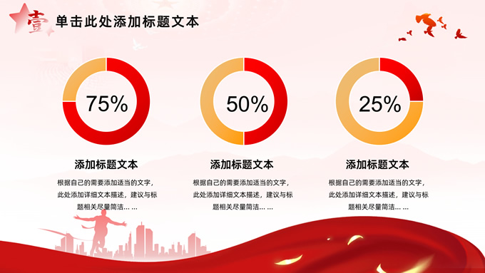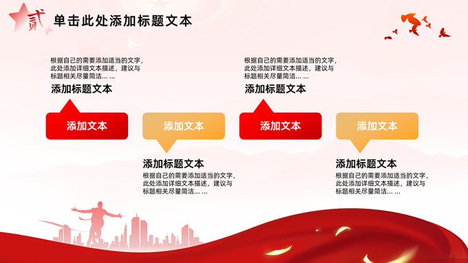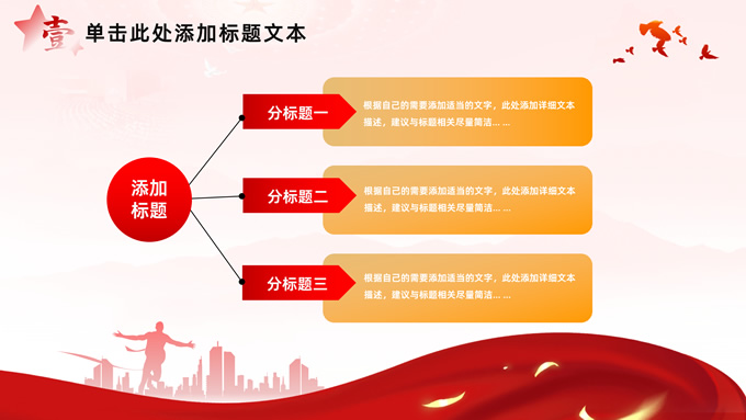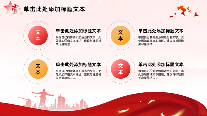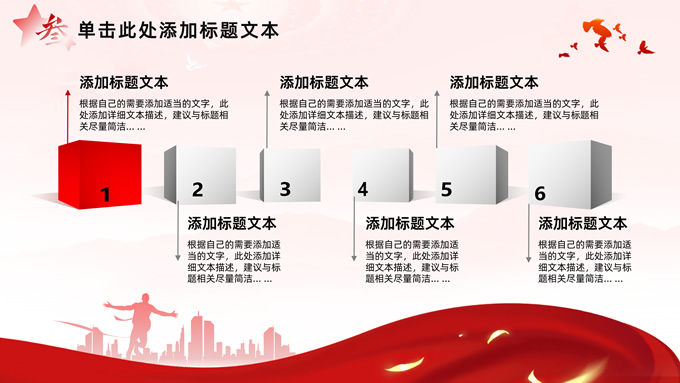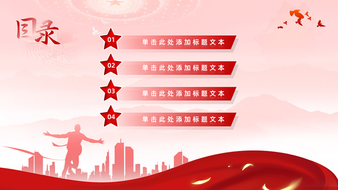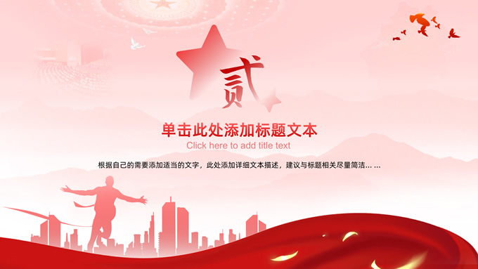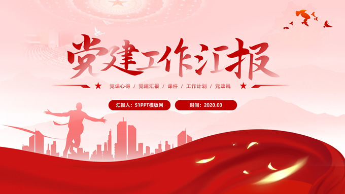简介:简洁大气党建工作汇报通用ppt模板,本模板共32P,淡淡红人民大会堂顶灯、连绵山川背景,飘带、奔跑冲线的人物城市剪影、创意字体标题文字封面、过渡页,红黄渐变色配色,扁平化图表,简约党政风版式内容页,适合党课心得、课件、工作汇报等场景应用的党建通用型ppt模板。