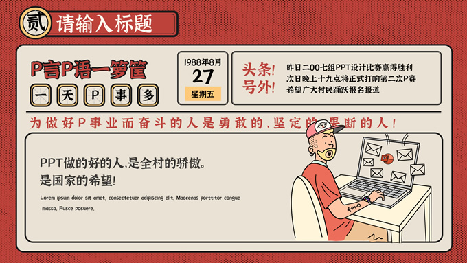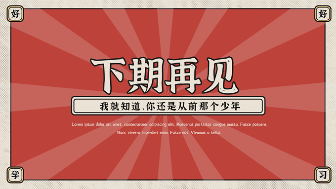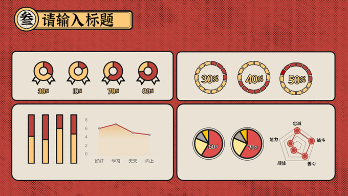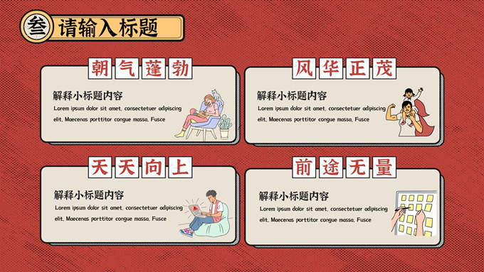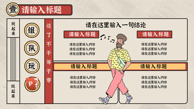 简介:矢量插画红色国潮复古ppt模板,本模板共13P,以红色和黄色为主基调配色,青春活力的矢量插画元素和创意布局,引入年轻人对热爱生活的文案和场景,个性又实用,适合个人总结、工作汇报、营销策划、企业年会、职场培训等场景应用,P界达人 常小二 作品。