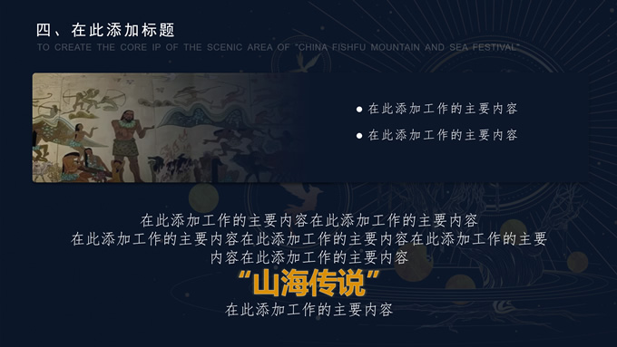 简介:山海传说国潮大气工作汇报ppt模板,本模板共10P,国潮中国风版式内容页,适合工作汇报、互联网线上体验景区产品介绍等场景应用的国潮风ppt模板,P界达人 刘雅丽 作品。