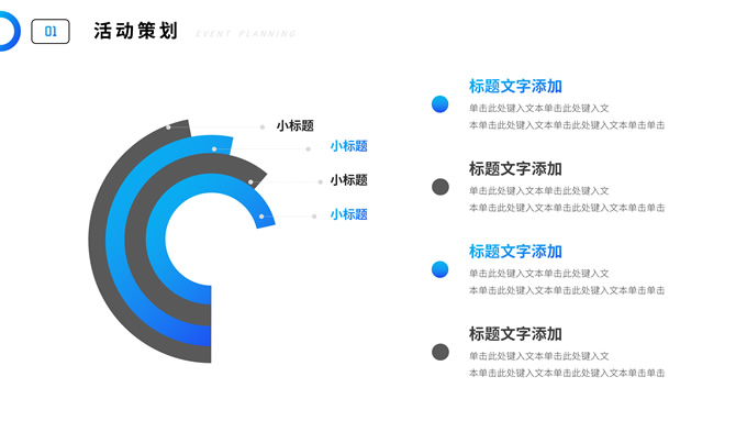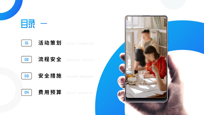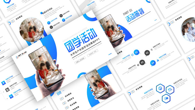 简介:圆环几何风户外团学活动策划ppt模板,本模板共19P,目录:活动策划、流程安排、安全措施、费用预算,手握手机主图渐变圆环几何风创意封面、目录页、过渡页,渐变蓝、灰配色,扁平化图表,纯白背景简约版式内容页,适合工作汇报、活动策划等场景应用的大学生户外团学活动策划ppt模板。