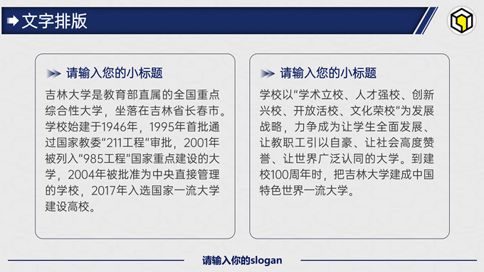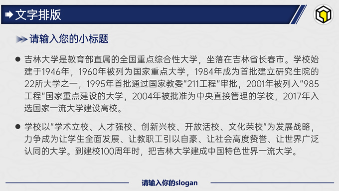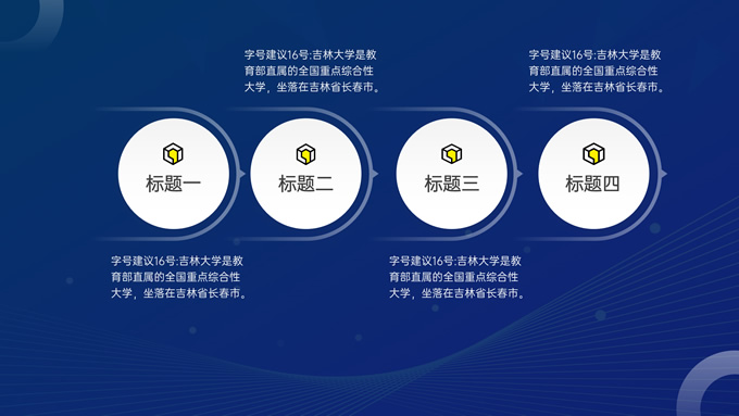 简介:学术蓝几何风大学年终总结ppt模板,本模板共36P,几何风封面、目录页、过渡页,学术蓝黄配色,扁平化图表,包含文字排版、图文排版、人物介绍、数据图表等版式内容页,适合论文答辩、年终总结等场景应用的大学通用型ppt模板,稿定年终PPT模板大赛 NewStart 作品。