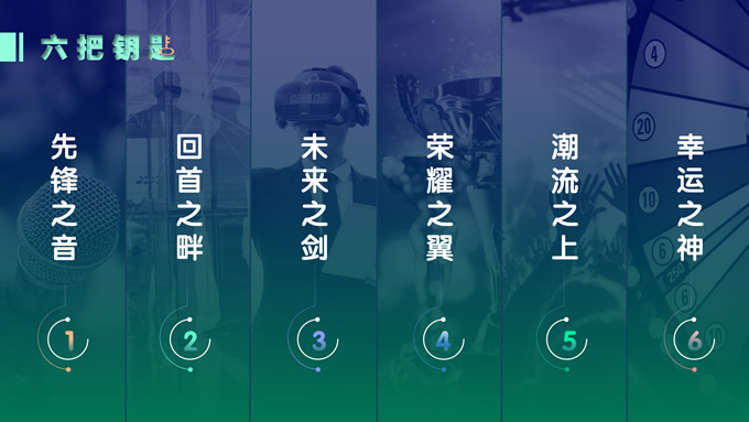 简介:新世界——科技公司年度盛典ppt模板,本模板共30P,目录:先锋之音、回首之畔、未来之剑、荣耀之翼、潮流之上、幸运之神,蓝绿科技配色,潮流科技风高端版式内容页,完整内容框架,适合公司年会、年终总结、年度盛典等场景应用的科技公司年会通用ppt模板,稿定年终PPT模板大赛 亦川 作品。