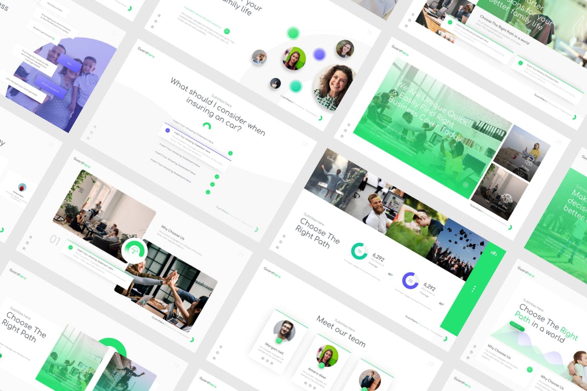 这次老不湿分享的是,时尚高端专业的高品质清新powerpoint幻灯片演示模板(pptx),采用绿色设计,可传播可信赖的氛围,简单的形状元素可增强演示文稿的内容。圆圈样式以简洁,简约和现代的样式主导模板布局。