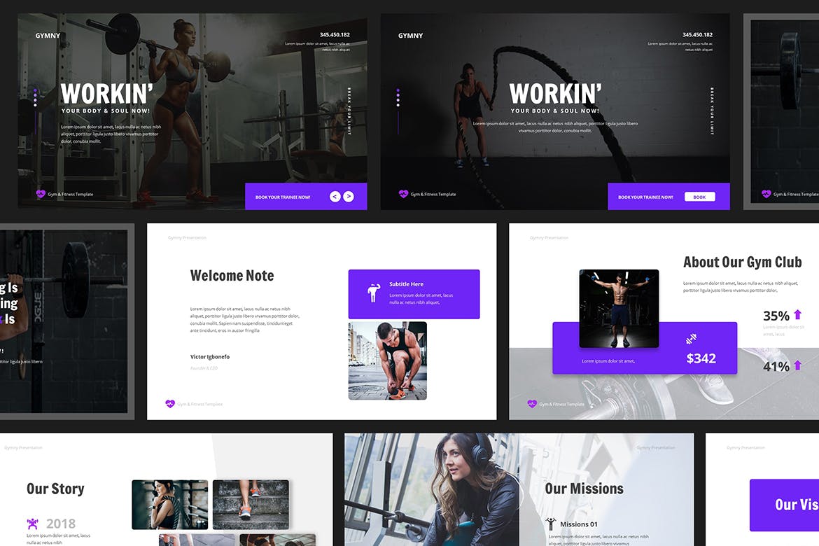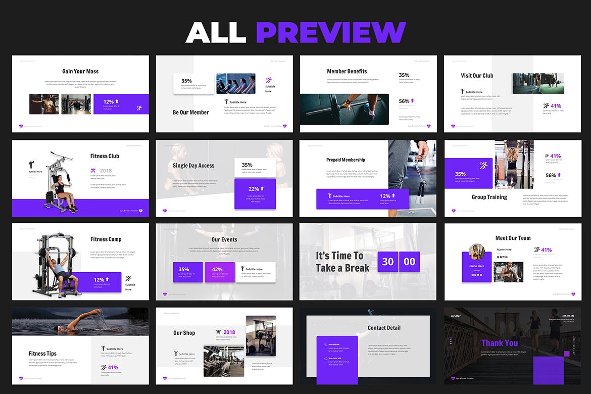 这次老不湿分享的是,时尚高端简约专业的健身主题keynote幻灯片演示模板(key),健身房和健身主题演讲是健身房和健身俱乐部的演示文稿模板,适用于您的健身中心活动推广,俱乐部和公司简介,营销工具包,并且适合任何体育类别。充满活力的外观演示模板,带有平面设计元素,易于更改颜色。