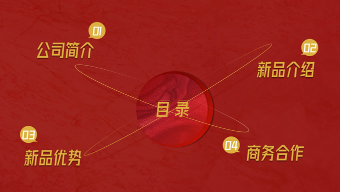 简介:喜庆红公司企业新品发布会ppt模板,本模板共23P,目录:公司简介、新品介绍、新品优势、商务合作,星球科技风创意封面、目录页、过渡页,喜庆红配色,科技风版式内容页,适合产品推介、新品发布等场景应用的发布会通用型ppt模板。