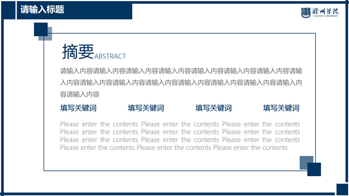 简介:学术蓝几何风毕业设计答辩通用型ppt模板,本模板共30P,目录:研究现状、选题意义、研究方法、研究内容、参考文献,几何图形裁图几何风创意封面、过渡页,学术蓝配色,版式内容包括文本页、图文页、图表页、参考文献页等,适合论文答辩、毕业设计等场景应用的通用型ppt模板。