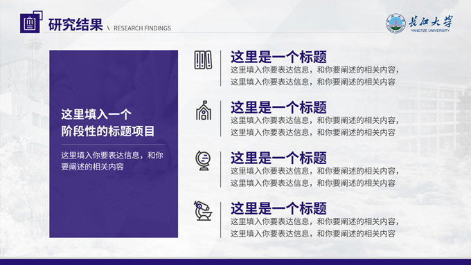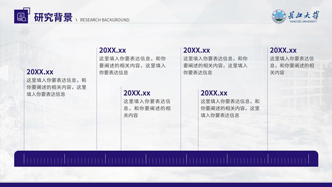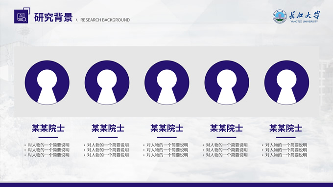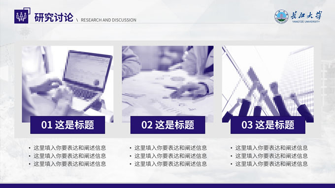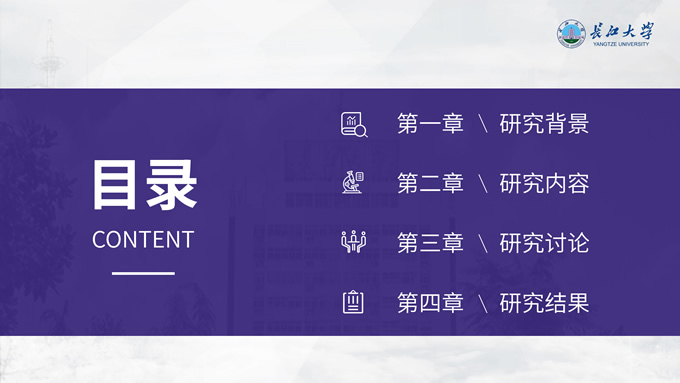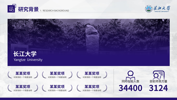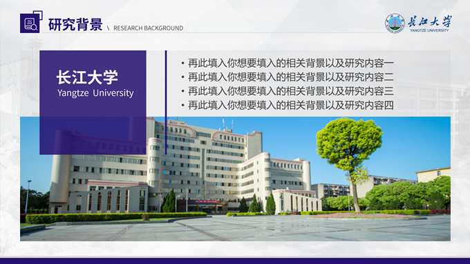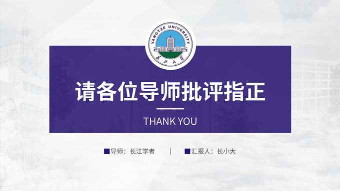 简介:长江大学学术答辩汇报通用ppt模板,本模板共23P,几何图形、校徽、色块扁平风设计封面,运用校徽中提取的紫色系配色,内容版式包括多套封面页、目录页、过渡页、文字段落页、图文页、图表页、证书荣誉介绍页等,适合长江大学论文答辩、毕业汇报、答辩汇报的通用ppt模板,P界达人 小敏 作品。