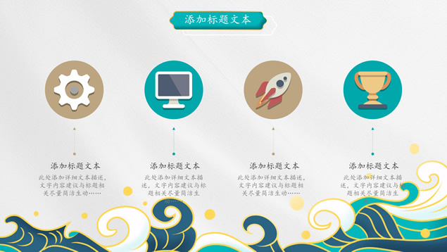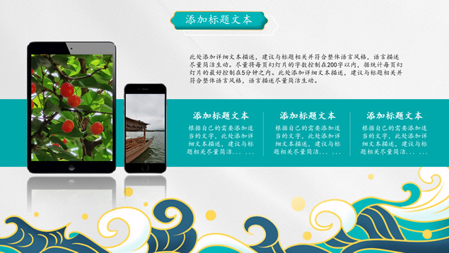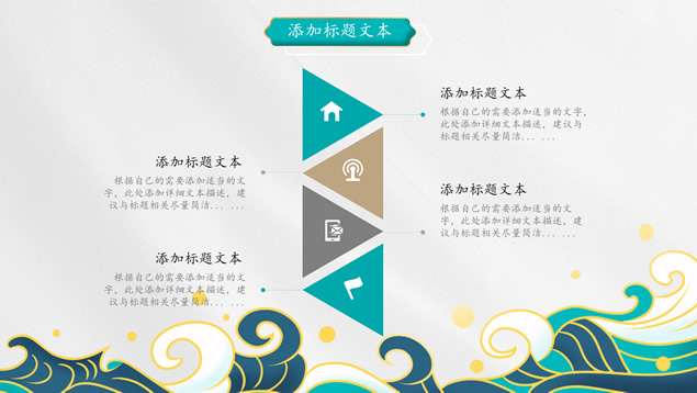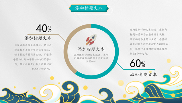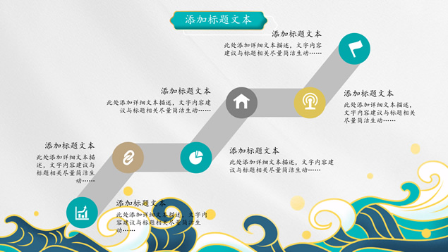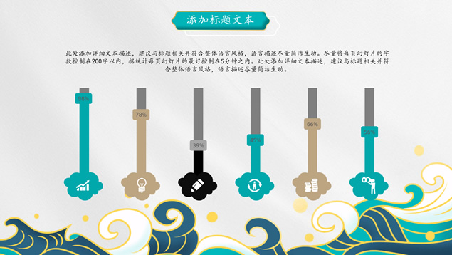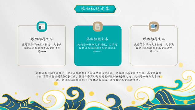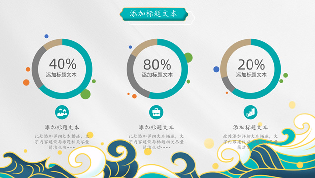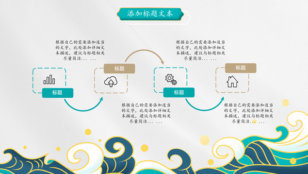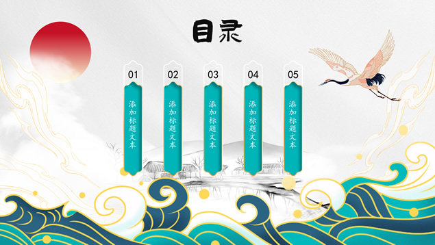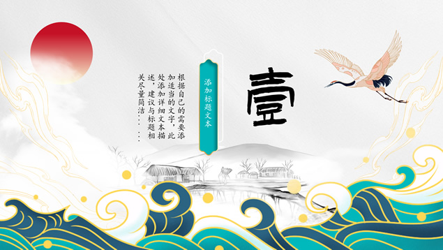 简介:简洁国潮中国风总结汇报ppt模板,本模板共25P,祥云、海浪、红日、仙鹤、山水画、吉祥图案线条框、中国风毛笔字体创意封面、目录页、过渡页,墨绿小清新配色,扁平化图表,适合工作总结、工作汇报等场景应用的国潮范中国风ppt模板。