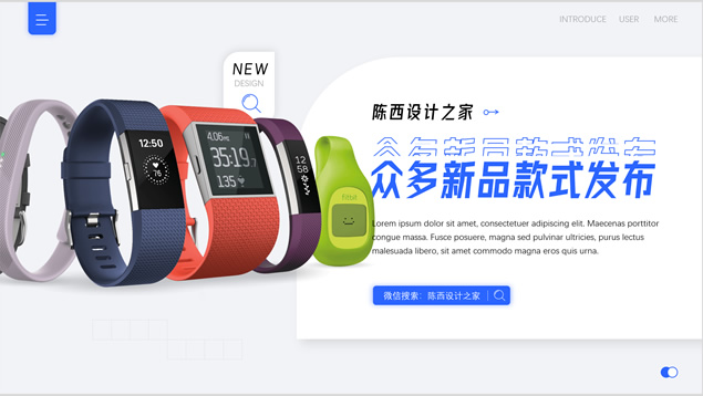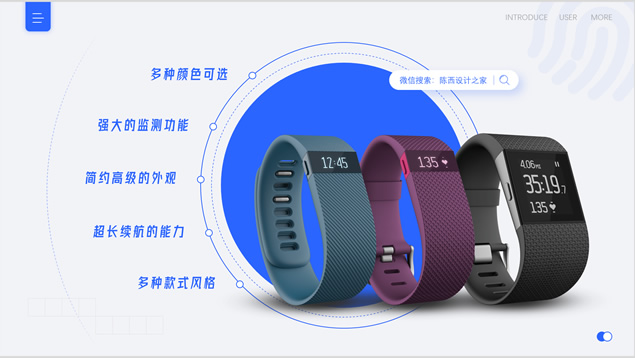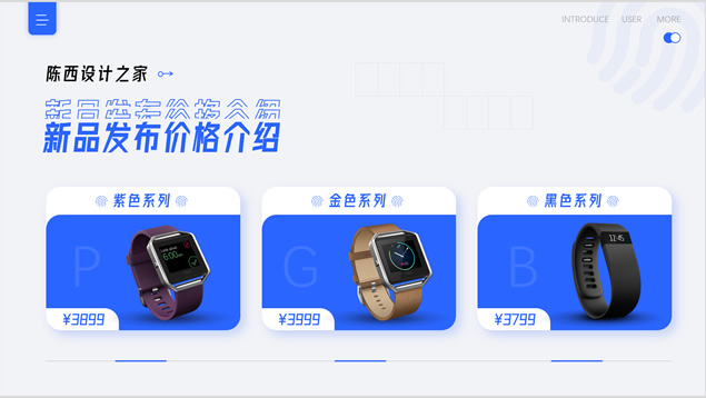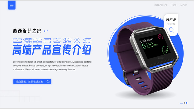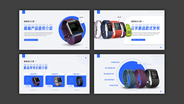 简介:高端简约产品介绍发布会级ppt模板,本模板共4P,这是一份关于智能手表的PPT介绍发布会作品,设计的要求就是高端简约有创意,整体以蓝色为主色调,搭配产品图和相关文案内容,进行整体的页面构思和效果设计,制作思路方面,多以形状,线条,阴影,贯穿整体设计,底板多留白,以显示高级感,电子产品发布会ppt模板。