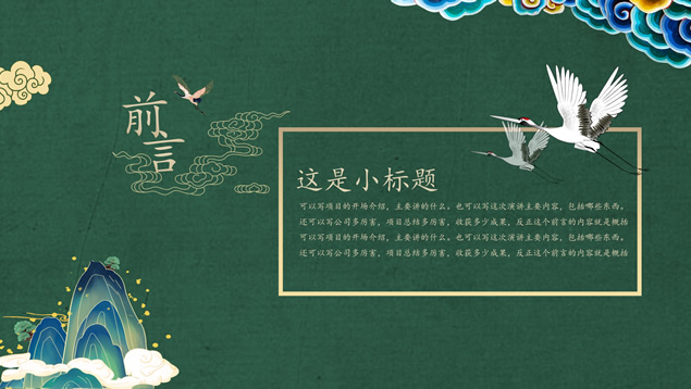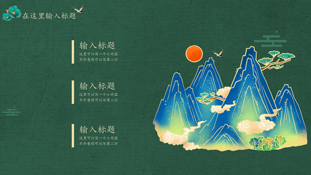 简介:现代国潮神韵中国风ppt模板,本模板共18P,祥云、山水、日出、波浪等中国风素材配图,现代国潮中国风简约版式内容页,适合工作总结、年中总结、述职报告、工作汇报等场景应用的中国风ppt模板。