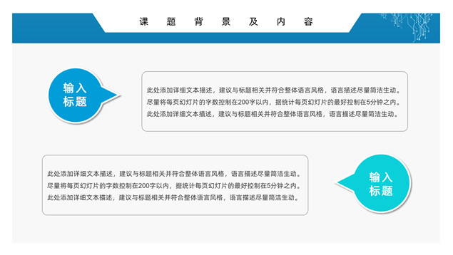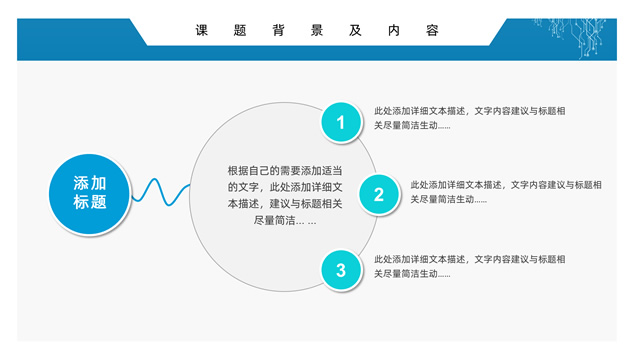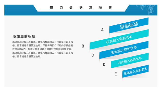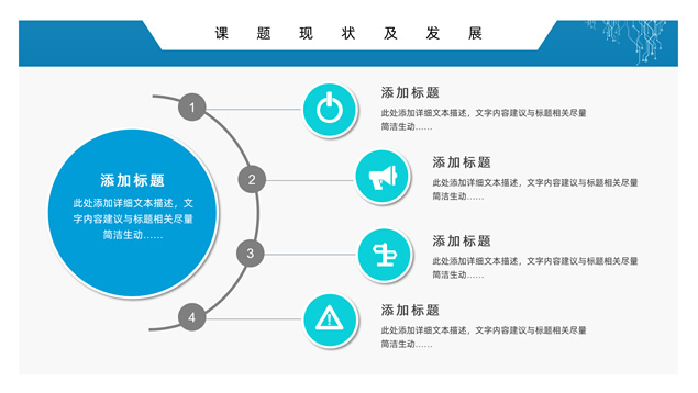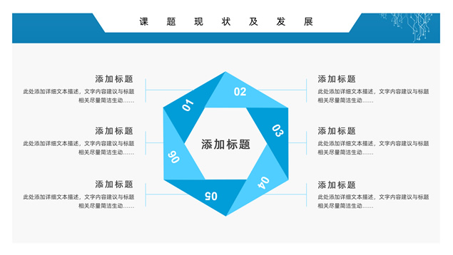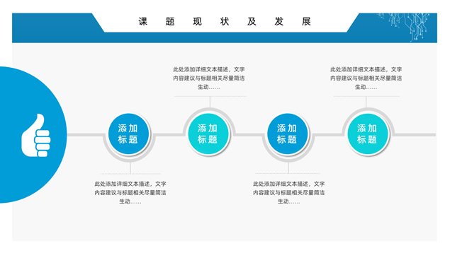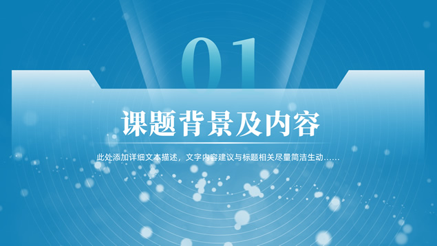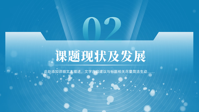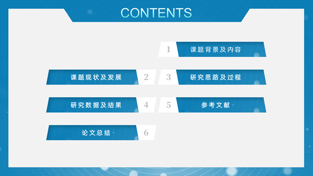 简介:蓝色科技风论文答辩通用ppt模板,本模板共25P,目录:课题背景及内容、课题现状及发展、研究思路及过程、研究数据及结果、参考文献与论文总结,科技风创意设计封面、过渡页,科技蓝配色学术风版式内容页,适合论文答辩、毕业汇报等场景应用的毕业答辩通用ppt模板。