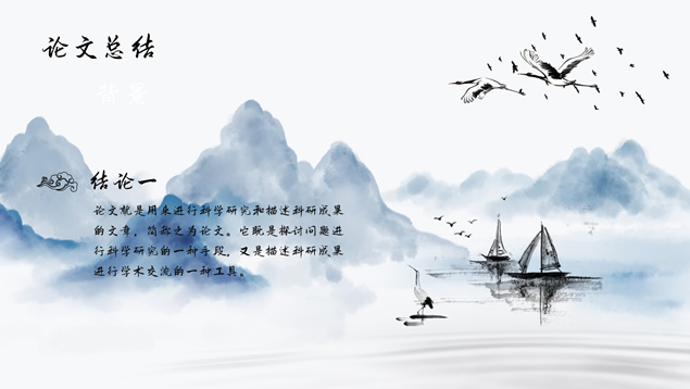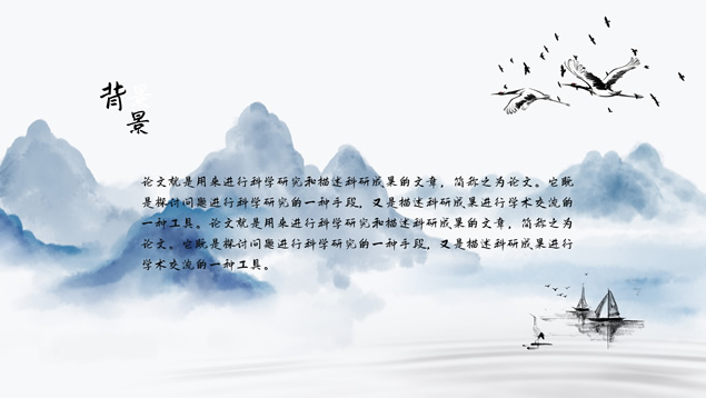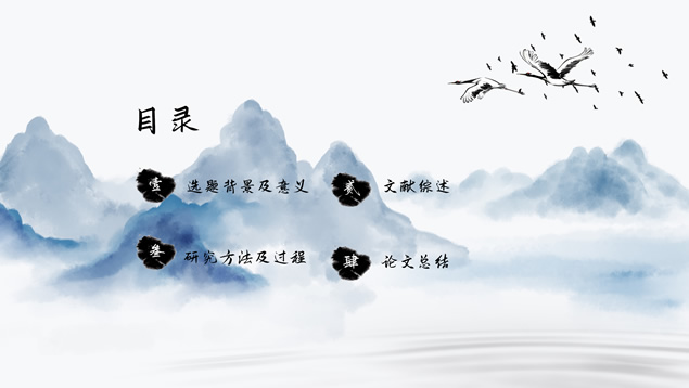 简介:小清新简约中国风论文答辩ppt模板,本模板共18P,目录:选题背景及意义、文献综述、研究方法及过程、论文总结,淡雅水墨山川背景,毛笔字标题文字封面、目录页、过渡页,水墨风图表,简约大气小清新中国风版式,适合工作总结、工作汇报等场景应用的论文答辩通用ppt模板。