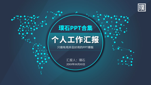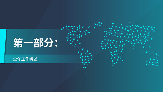 简介:网点世界地图背景科技风个人工作汇报ppt模板,本模板共32P,点线世界地图背景,几何圆标题文字创意设计封面,几何风过渡页,多套精美炫酷渐变图表,科技蓝配色,适合个人工作汇报、个人年终总结等场景应用的科技风总结汇报通用ppt模板。