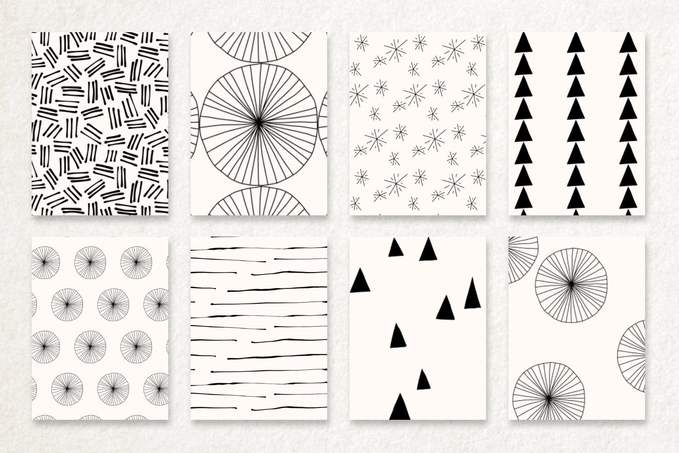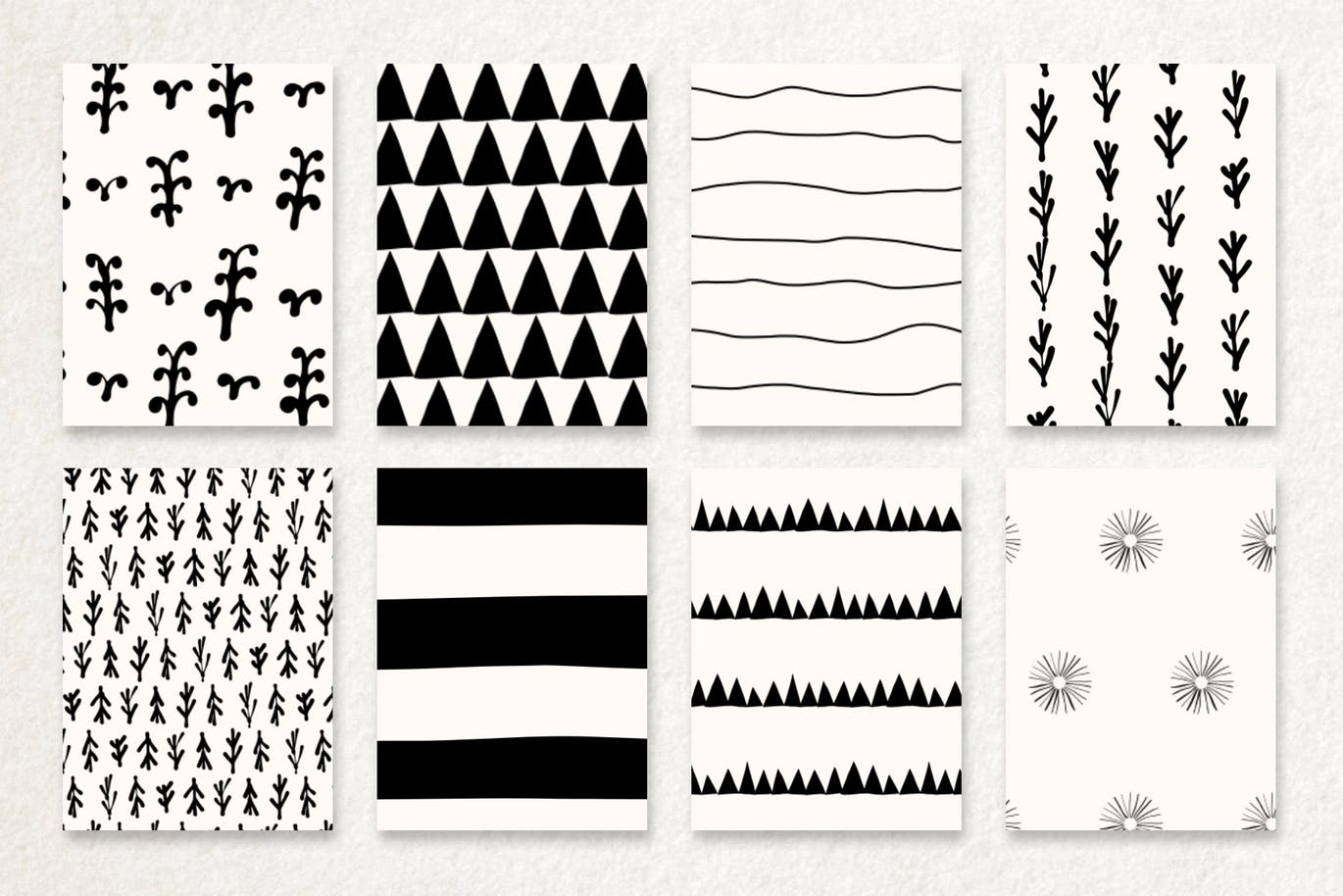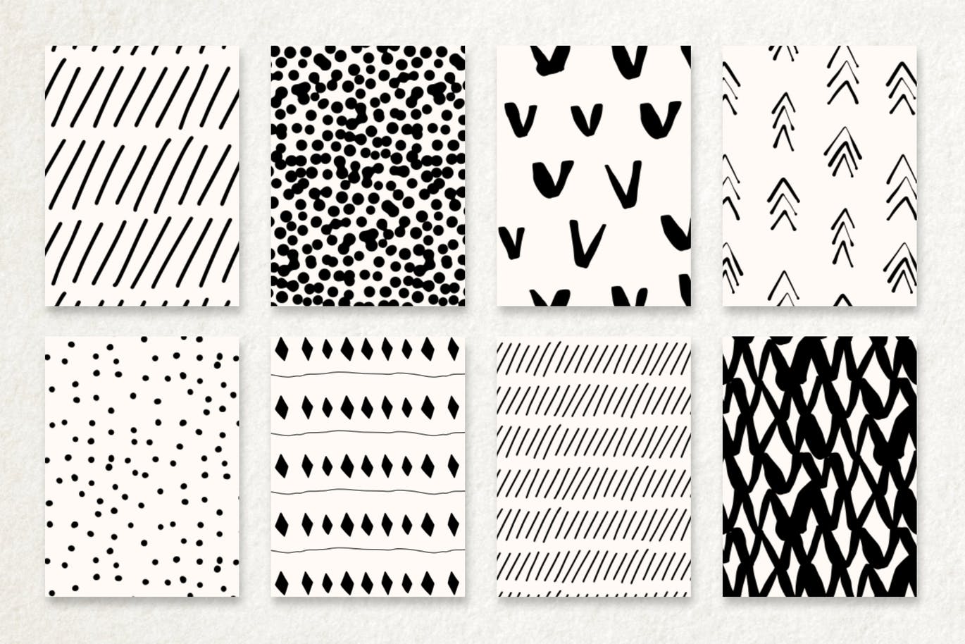 该素材包含40种手绘无缝图案,唤起陶器设计和陶瓷绘画的休闲和现代风格,非常适合品牌项目,背景,产品设计等。