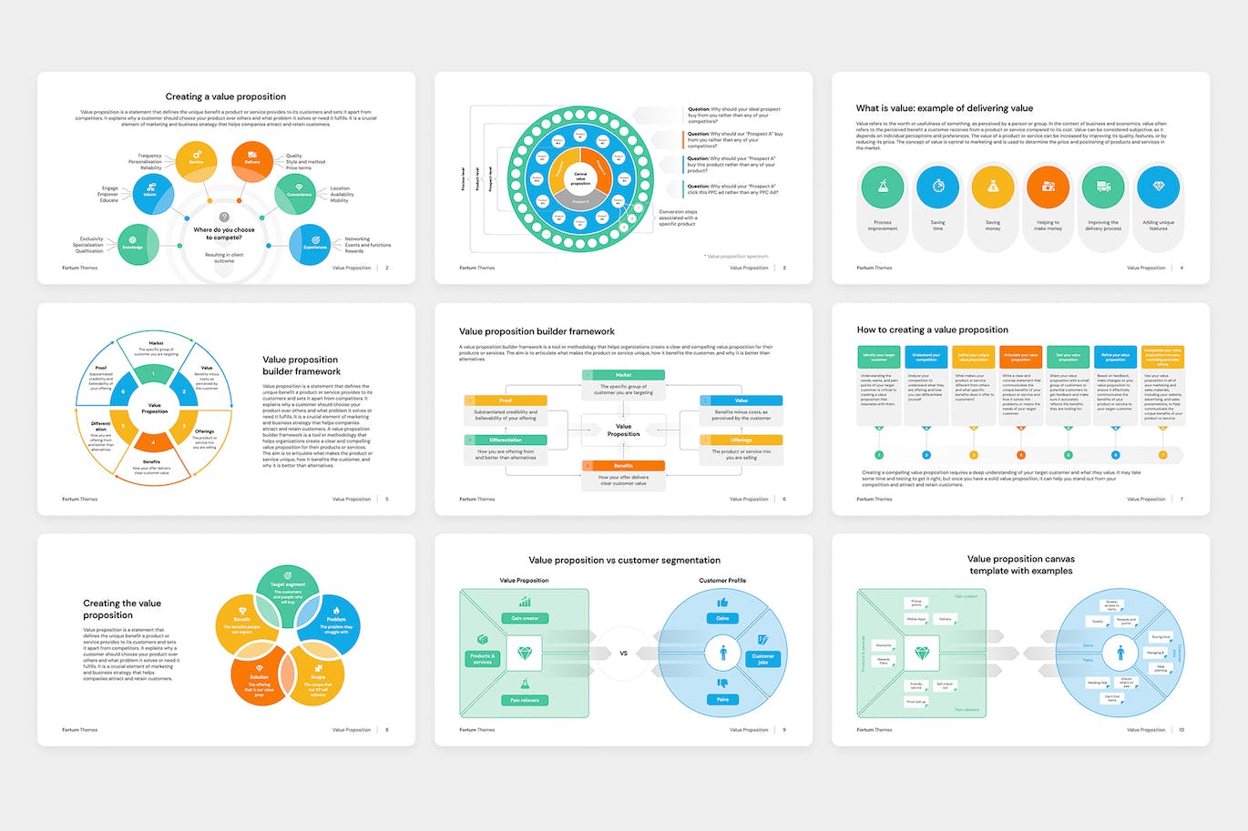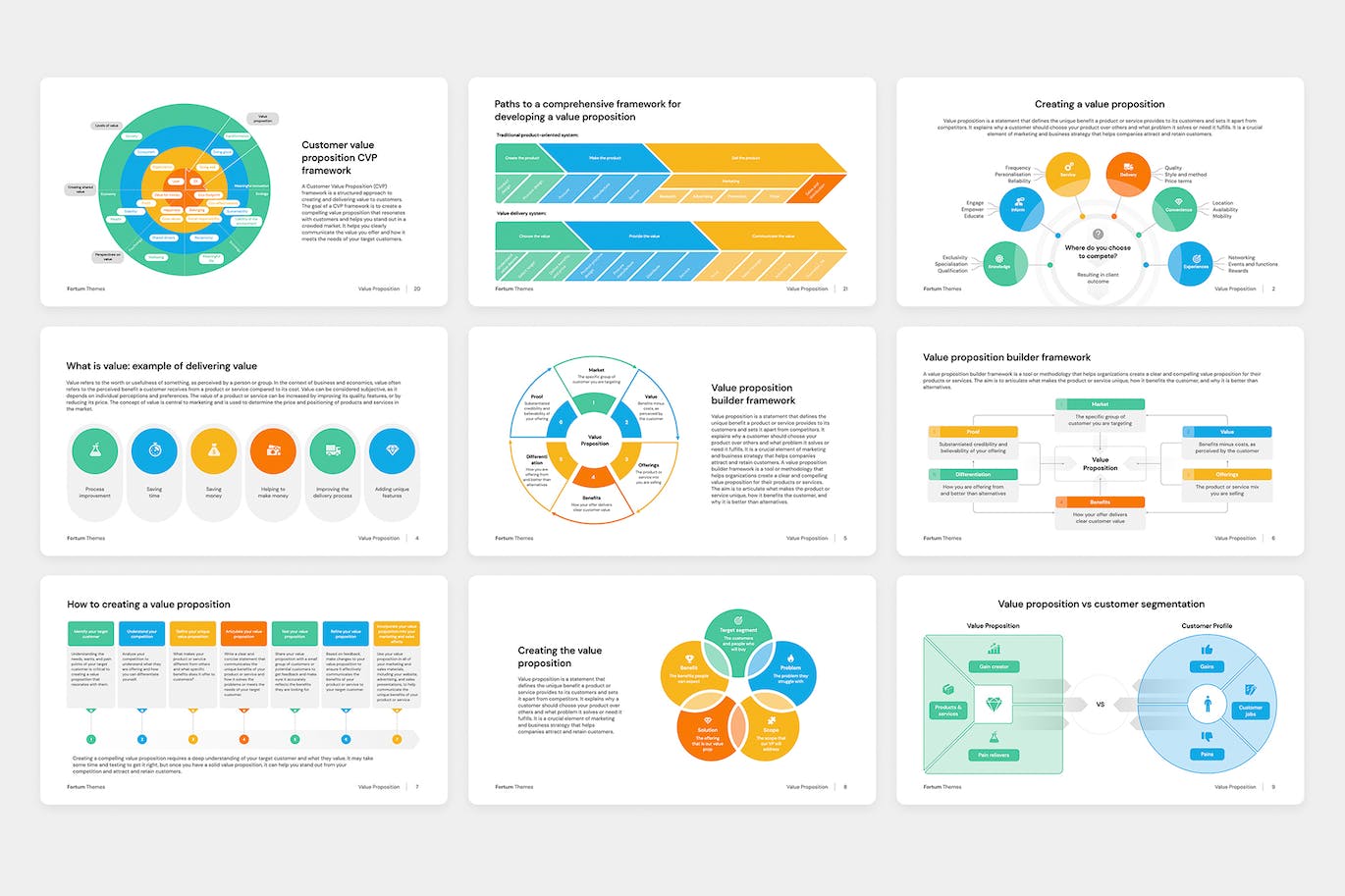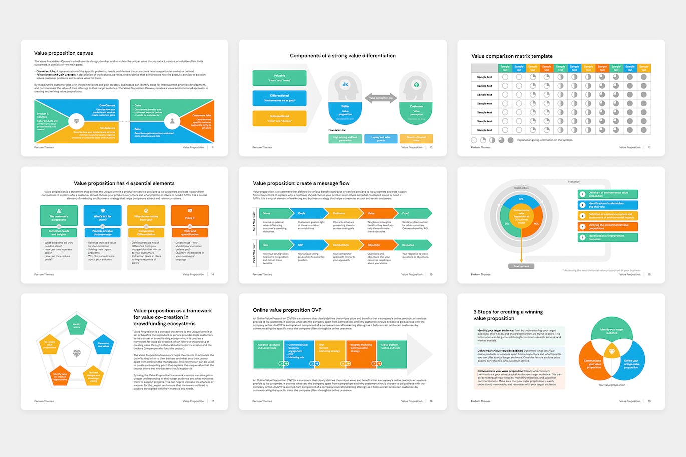 价值主张、创建价值主张、价值主张谱、交付价值的价值示例、价值主张构建器框架、如何创建价值主张、创建价值主张、价值主张与客户细分、价值主张画布带有示例的模板,价值主张画布,强大的价值差异化的组成部分,价值比较矩阵模板,价值主张具有 4 个基本要素,价值主张创建消息流,评估您企业的环境价值主张,价值主张作为价值框架众筹生态系统中的共同创造,在线价值主张 OVP,创建获胜价值主张的 3 个步骤,客户价值主张 CVP 框架,通往开发价值主张的综合框架的路径。轻松更改大小和颜色,无需 Photoshop 或 Illustrator!