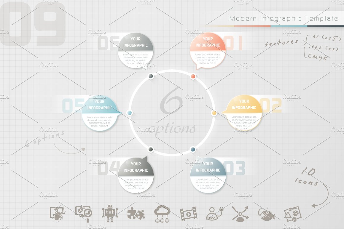 现代圆信息图表模板(6个选项)是可用的矢量格式: