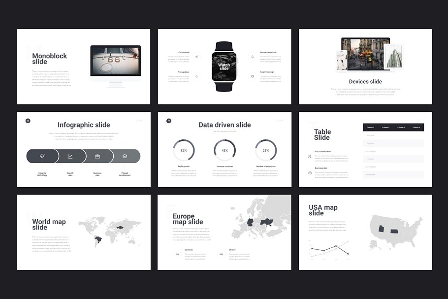 这款ppt模板是企业、投资项目、初创企业、创新解决方案等众多领域的完美解决方案。 优雅的风格和惊人的字体使这个美丽的呈现。