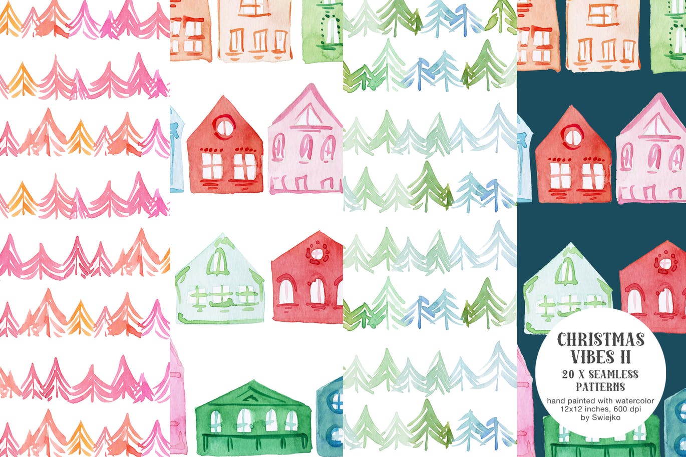 合集中收藏了20个手绘水彩圣诞图案,每一个都是无缝的,所以您使用这些素材创建一个大的背景。