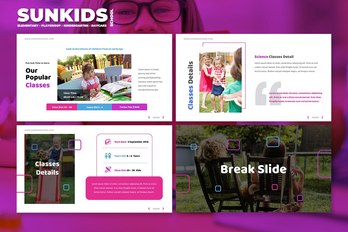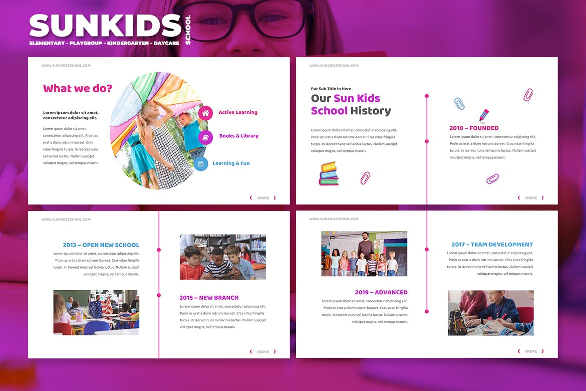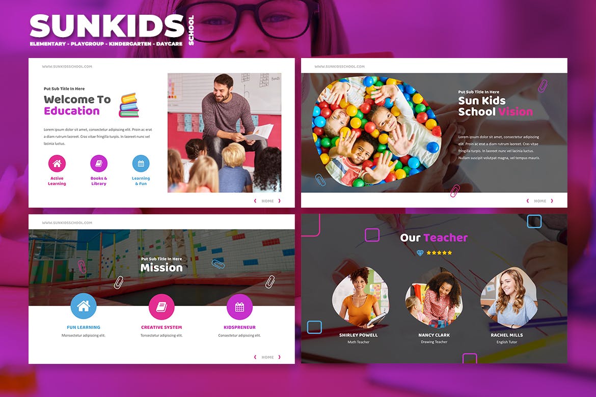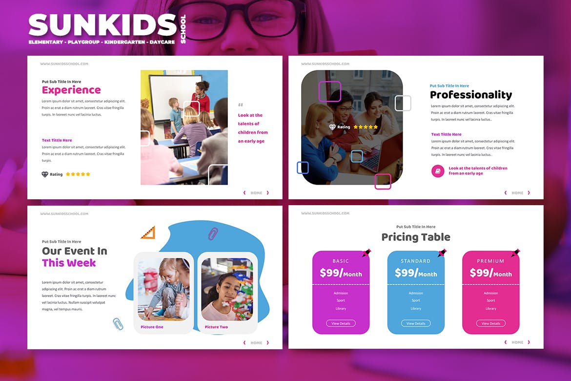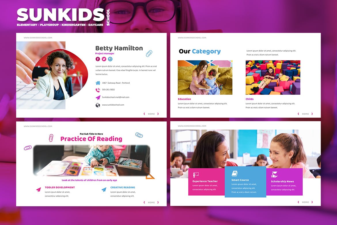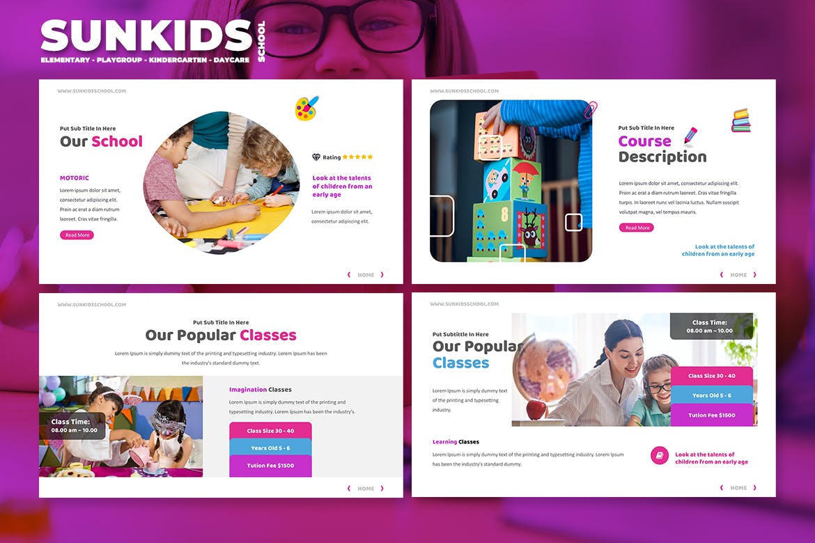令人惊叹的……高品质,干净,简约的学校/幼儿园/游戏组/日托Powerpoint模板。内容幻灯片易于管理,具有真实标题和组织良好的幻灯片。我们提供8种不同的颜色文件,以满足您的品牌颜色