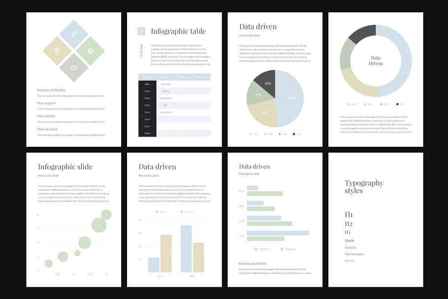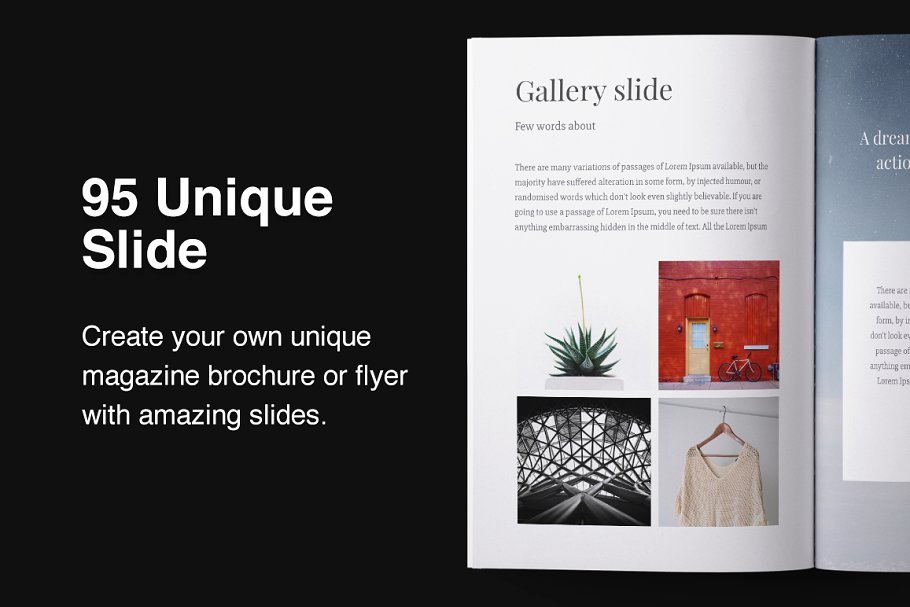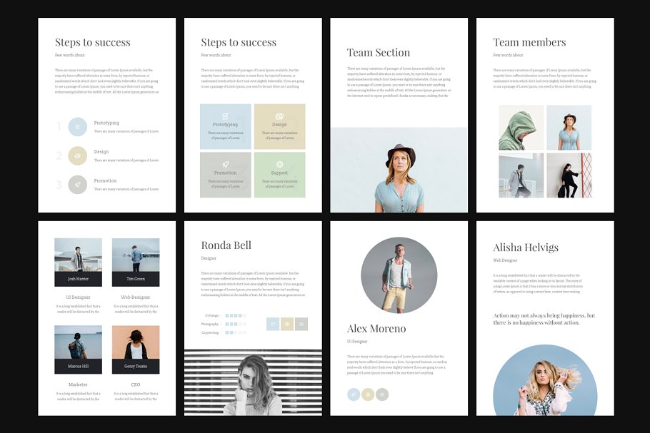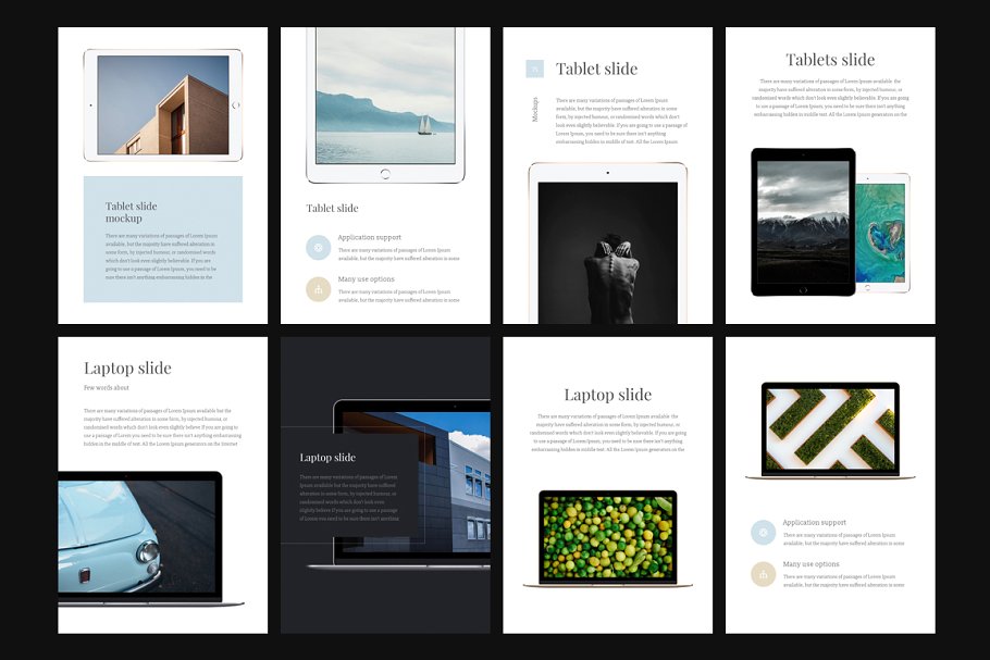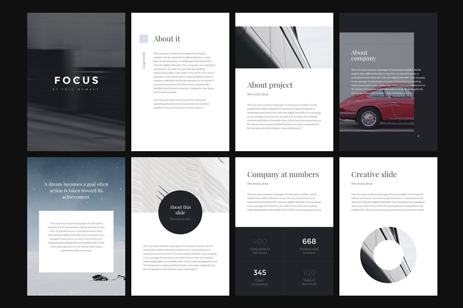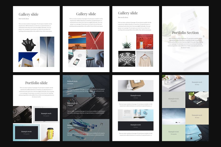 这是一种克制的极简主义风格。由于它的简单和简洁,它非常适合任何强调文本和没有不必要的干扰的项目。快来用这个ppt模板创建你自己独特的杂志小册子传单啦!
