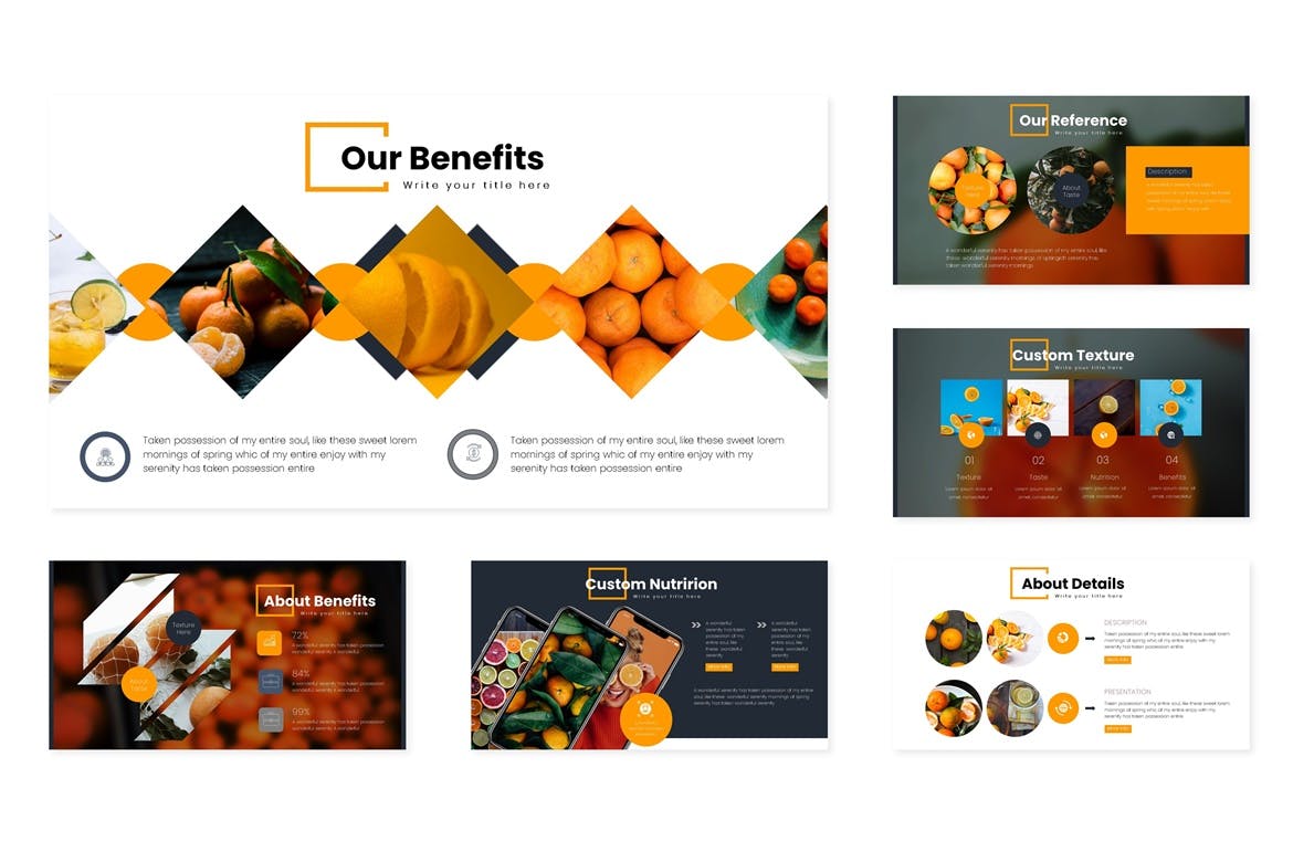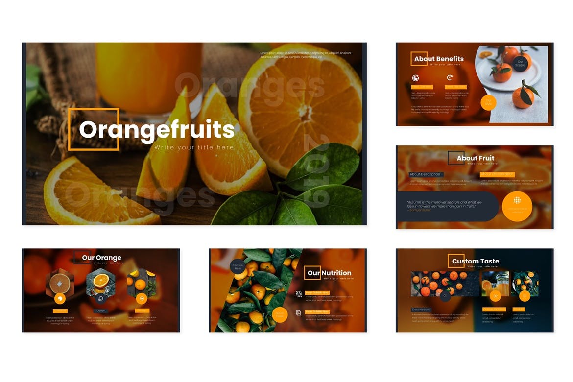 这次老不湿分享的是,时尚高端橘子橙子配色的高品质Google Slides谷歌幻灯片演示模板(pptx),橘子 – 谷歌幻灯片模板 – 具有第五个预制颜色变化现在获取它, 橙色 – 谷歌幻灯片模板是一个伟大的模板,用于商业或个人需求与多功能演示文稿。此模板中的所有元素均使用Google幻灯片制作,仅使用Google幻灯片进行编辑,插入内容,将图片替换为占位符,更改颜色以及所有演示文稿(包括动画幻灯片)并将幻灯片呈现给业务合作伙伴。快乐的滑块!!!