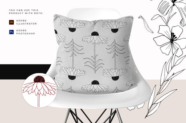 这组合集包括了20款花卉图形元素,所有图案均为手绘,绘有不同种类的花和叶:)
