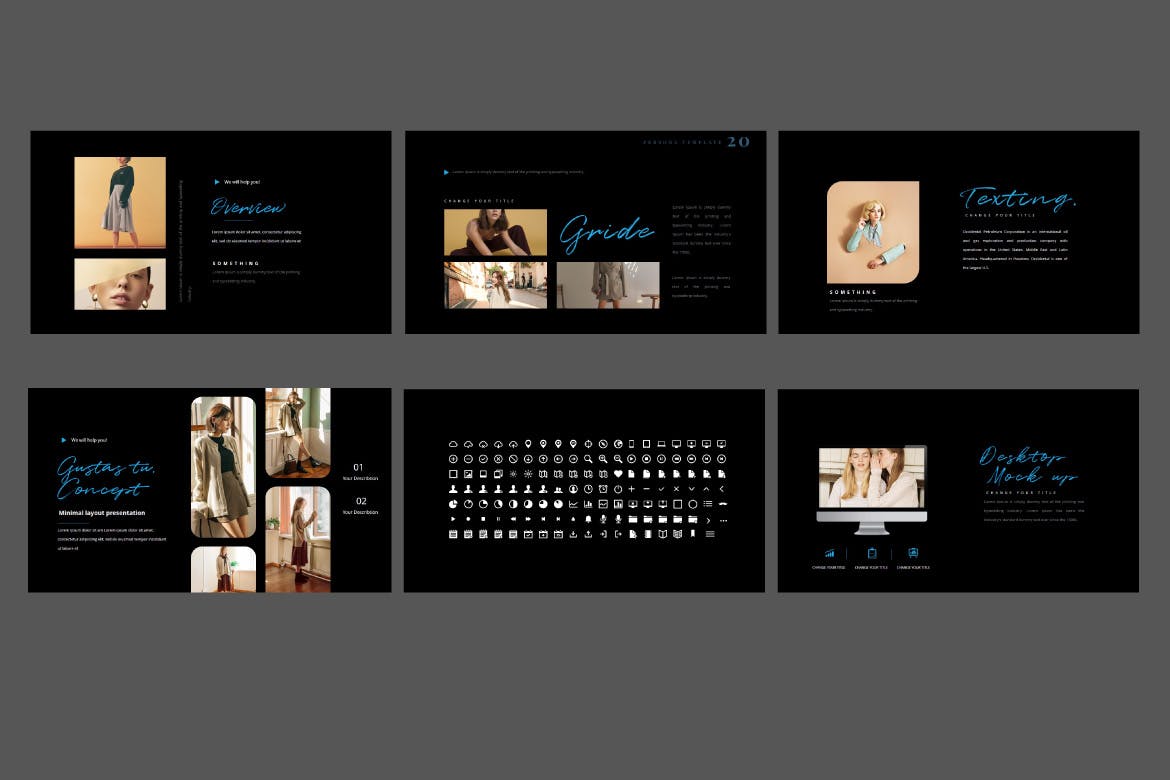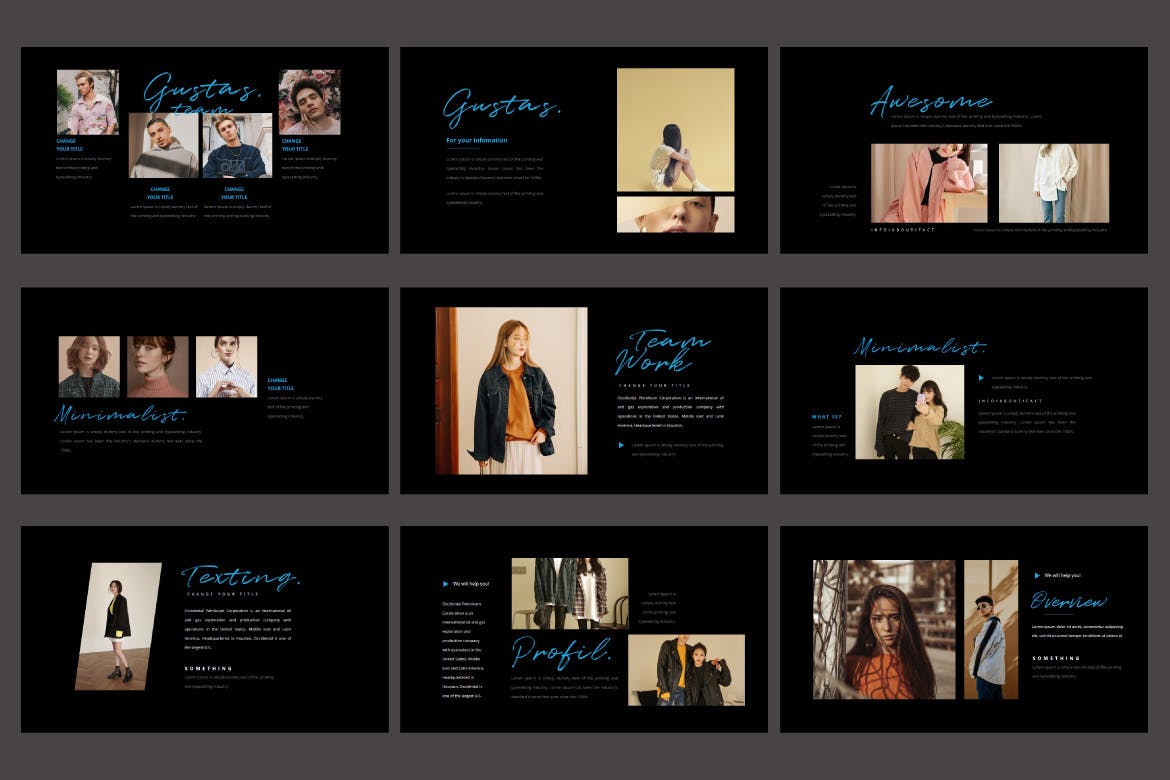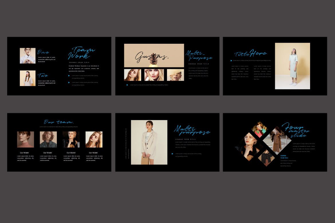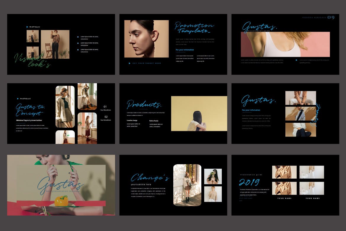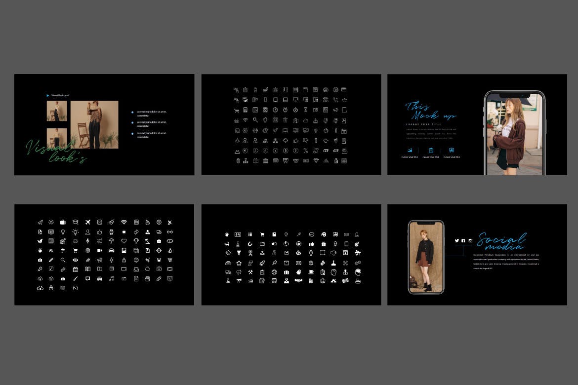 这次分享的是,高端深色的PPT模板下载[PPTX],适合表现复古的时尚品牌相关设计。