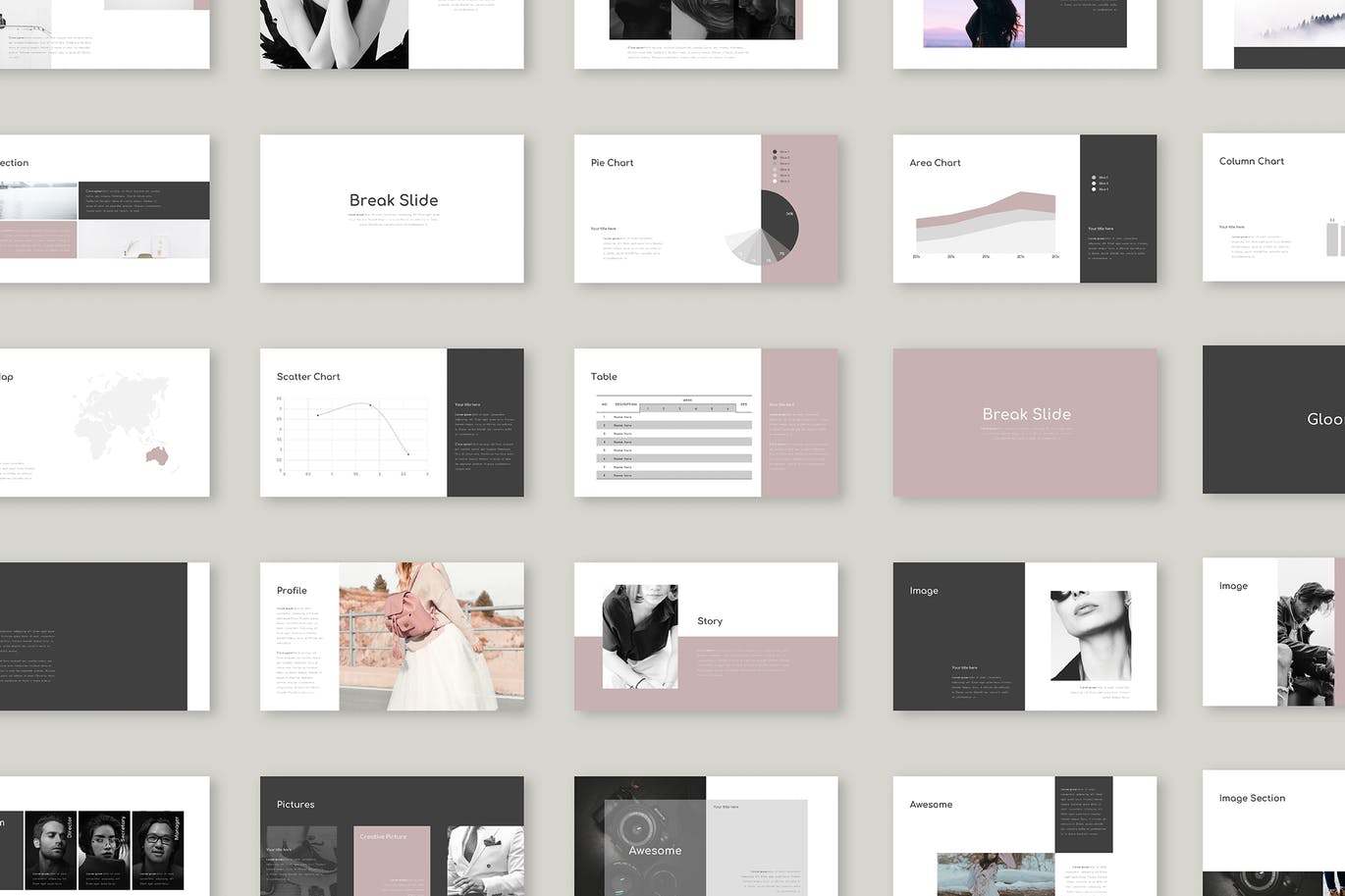 这次老不湿分享的是,时尚高端优雅简约大数据图表powerpoint幻灯片演示模板(pptx),特征