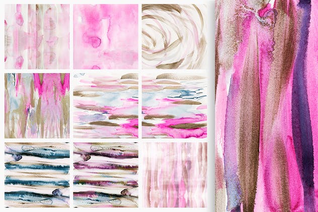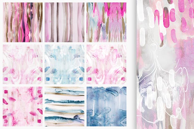 这组现代流体非无缝水彩画图案集合具有美丽多变的纹理细节,是用于创建您的品牌,博客,固定设计,社交媒体帖子,创意工艺等项目的理想素材。