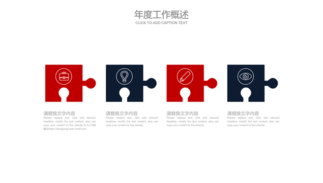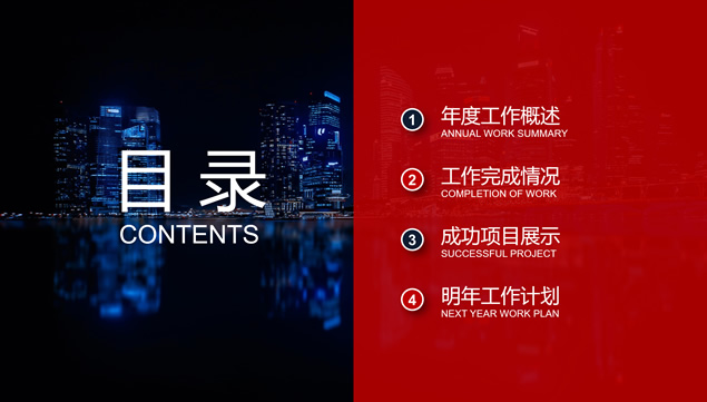简介:年终总结新年计划ppt模板,目录:年度工作概述、工作完成情况、成功项目展示、明年工作计划,大图背景半透明几何风设计封面、目录页、过渡页,深灰红配色,简约扁平化设计,适合工作总结、年终总结、新年工作计划等场景应用的红灰扁平商务风ppt模板。