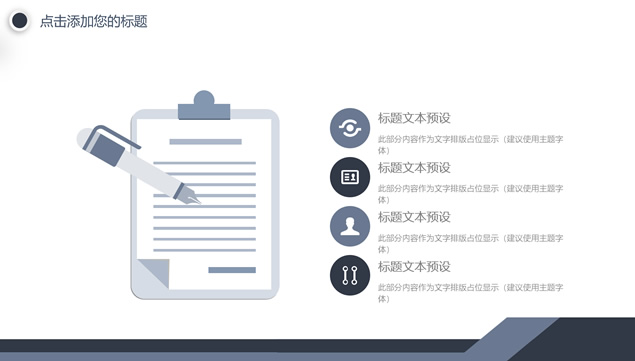 简介:年度总结新年计划通用ppt模板,目录:年度工作总结、工作完成情况、成功项目展示、明年工作计划,运动感几何风创意设计,微立体目录页、过渡页,沉稳商务蓝配色,扁平化设计,商务人物剪影、卡通商务人物、树、文件夹、一双手、道路等精美创意图表,运动几何风简约商务总结计划通用ppt模板。