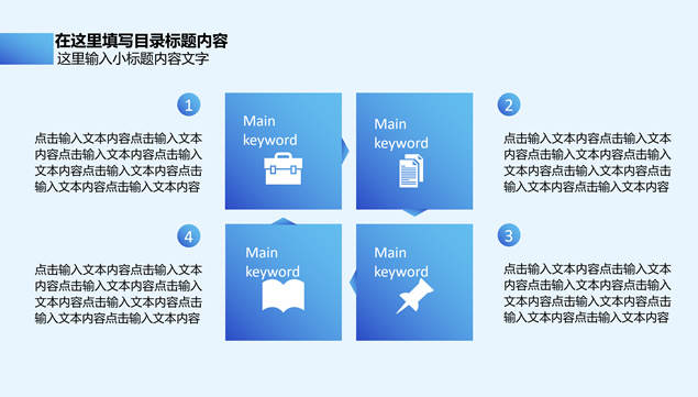 简介:蓝色渐变喷溅墨点艺术创意封面,渐变蓝配色,几何风目录页、过渡页,精美实用图表图文排版,适合工作总结、工作汇报、会议演示等场景应用的商务通用ppt模板。